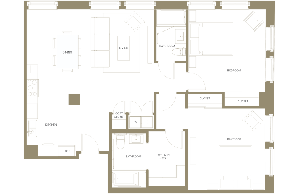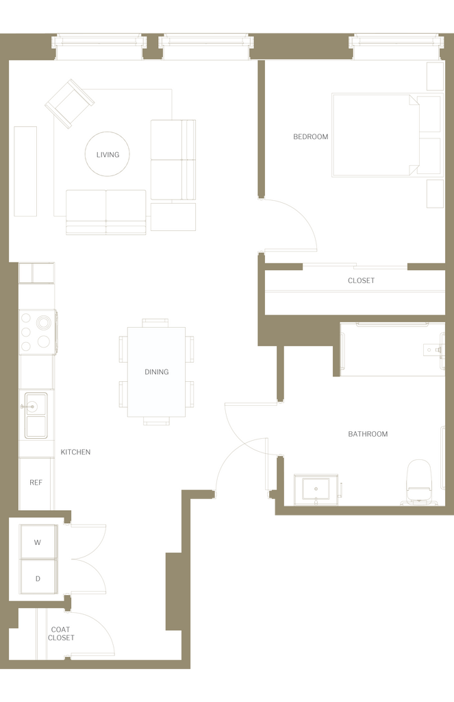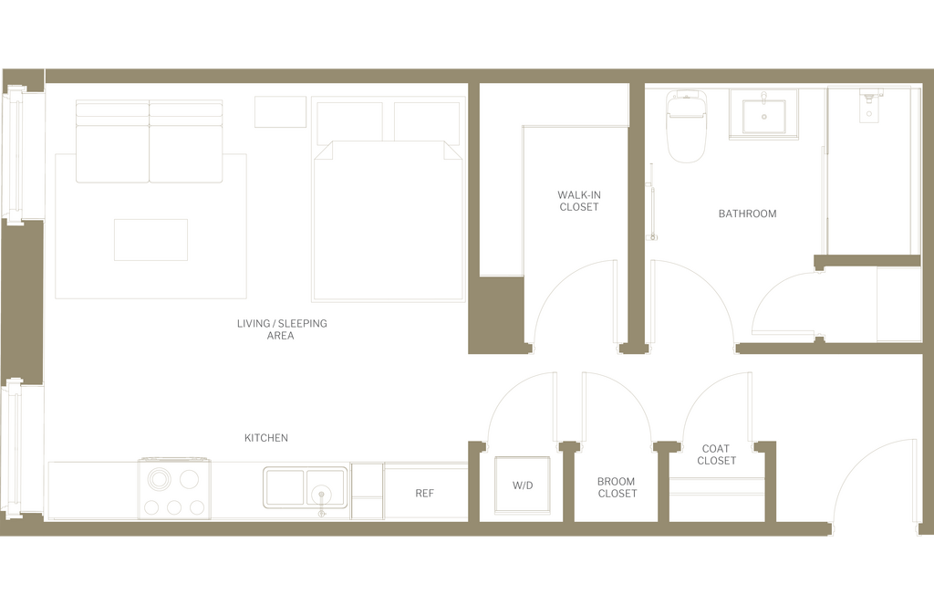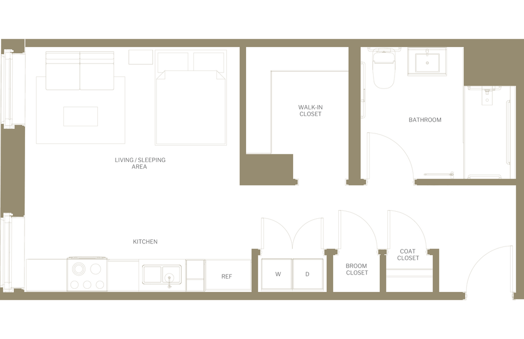 Estudio, 1 Baño, 645 pies²Galería del Modelo