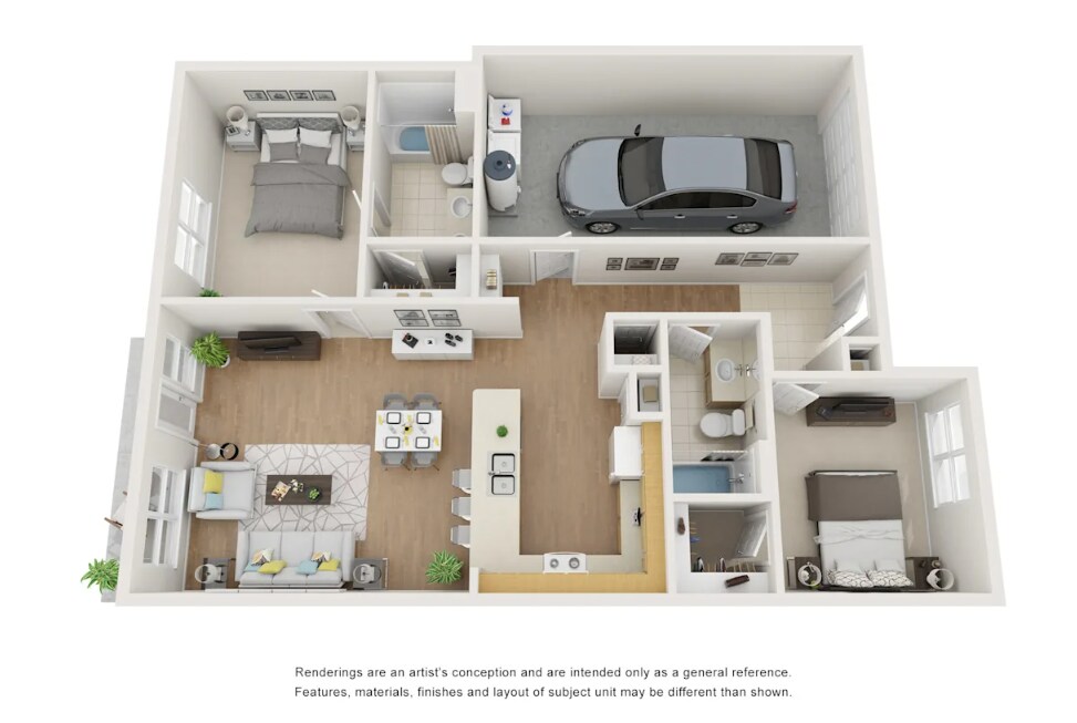 Modelo de apartamento: C1Desde $1,8703 Dormitorios, 2.5 Baños, 2007 sq ftDisponible Ahora![]()