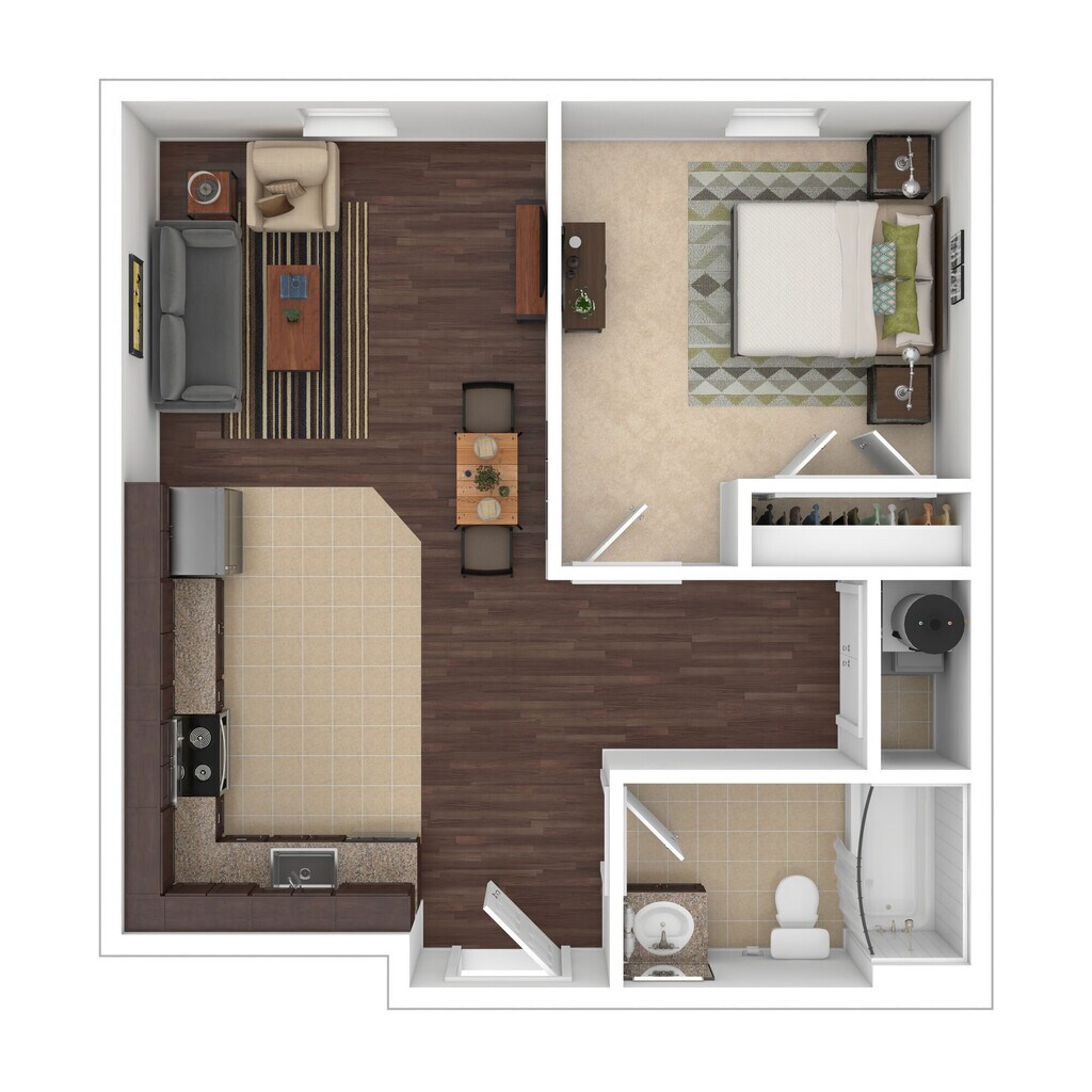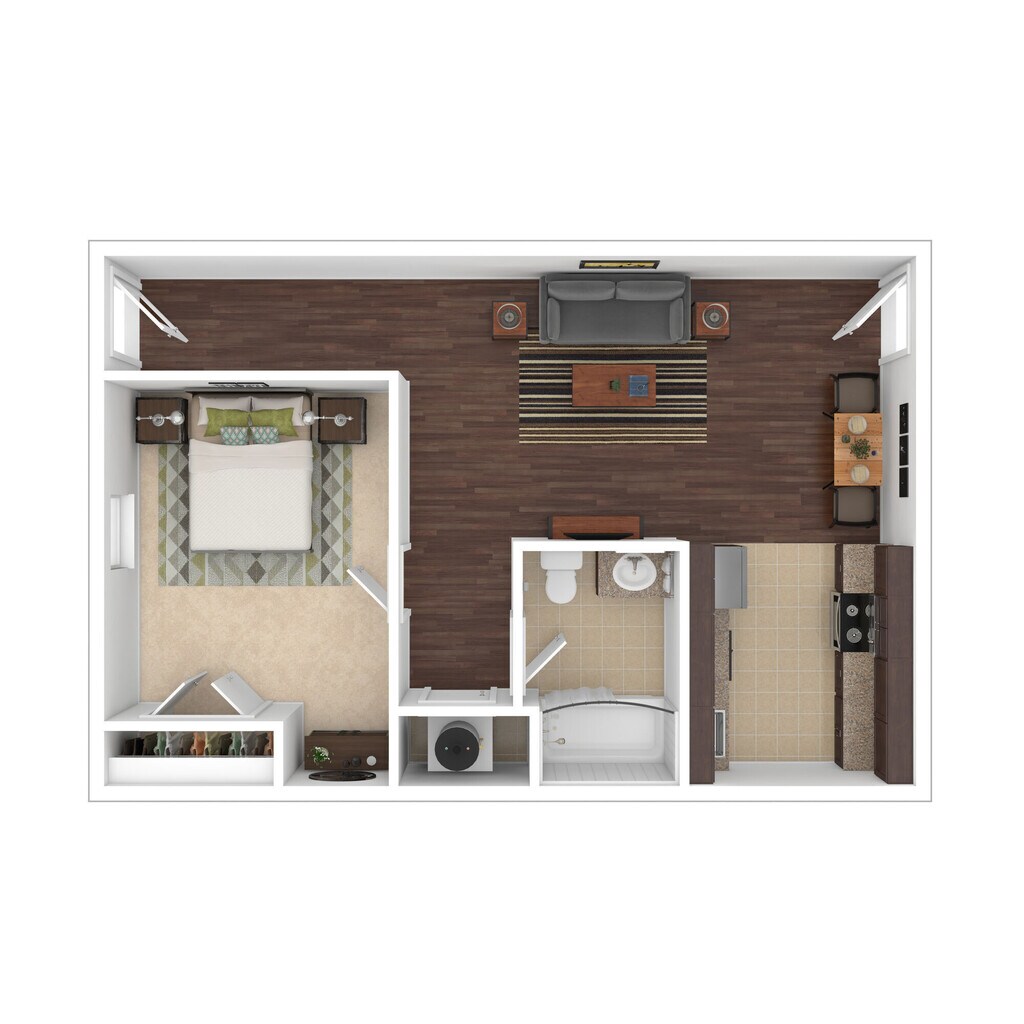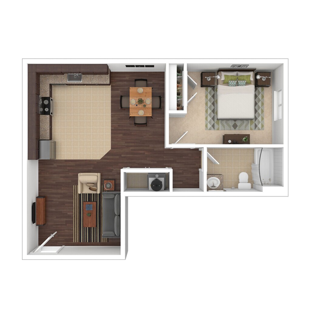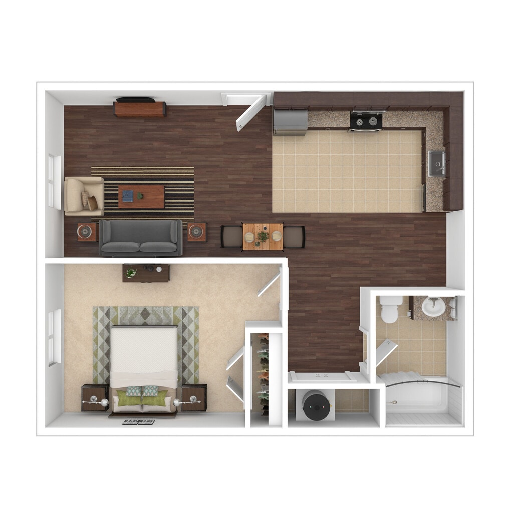 Modelo de apartamento: Chestnut$1,0881 Dormitorio, 1 Baño, 545 sq ftDisponible Ahora![]()