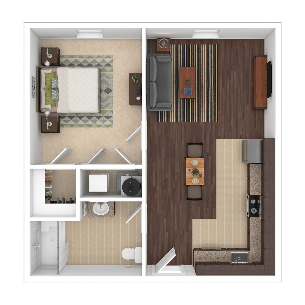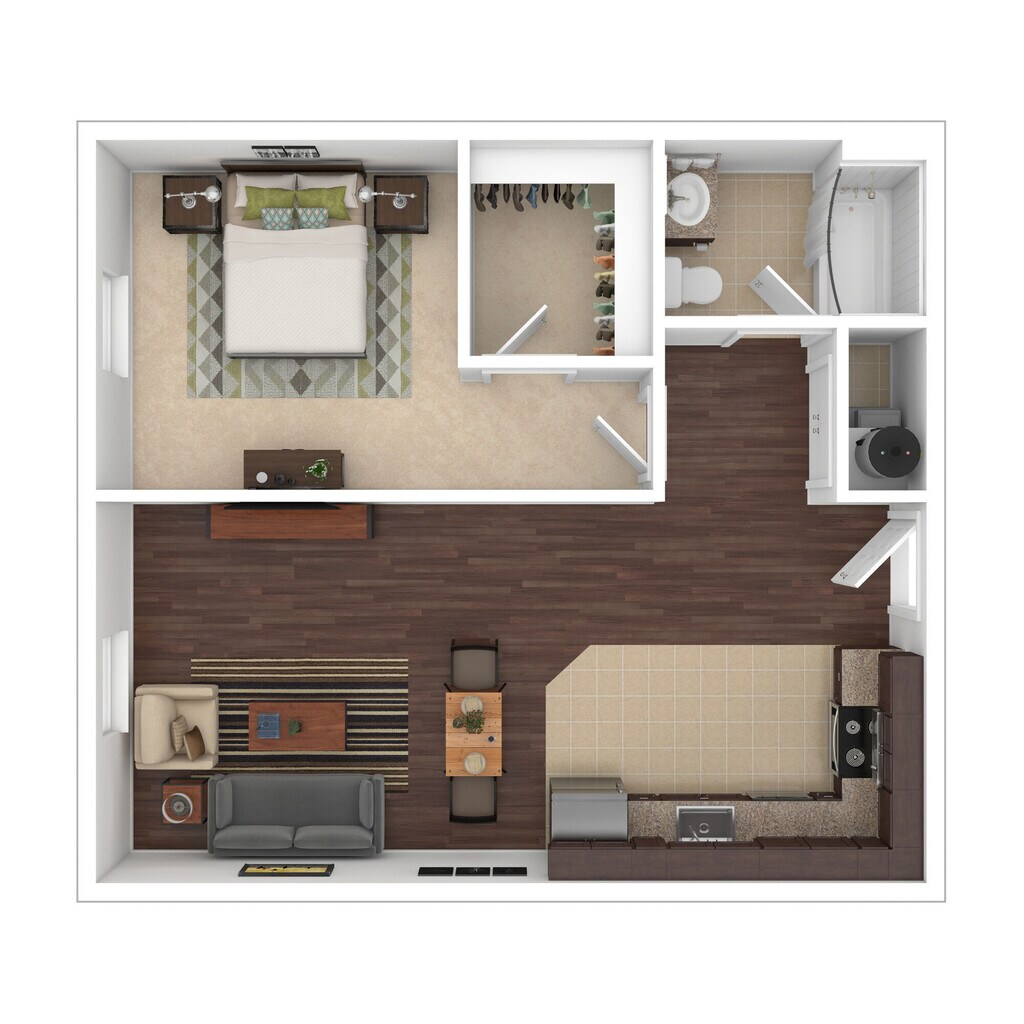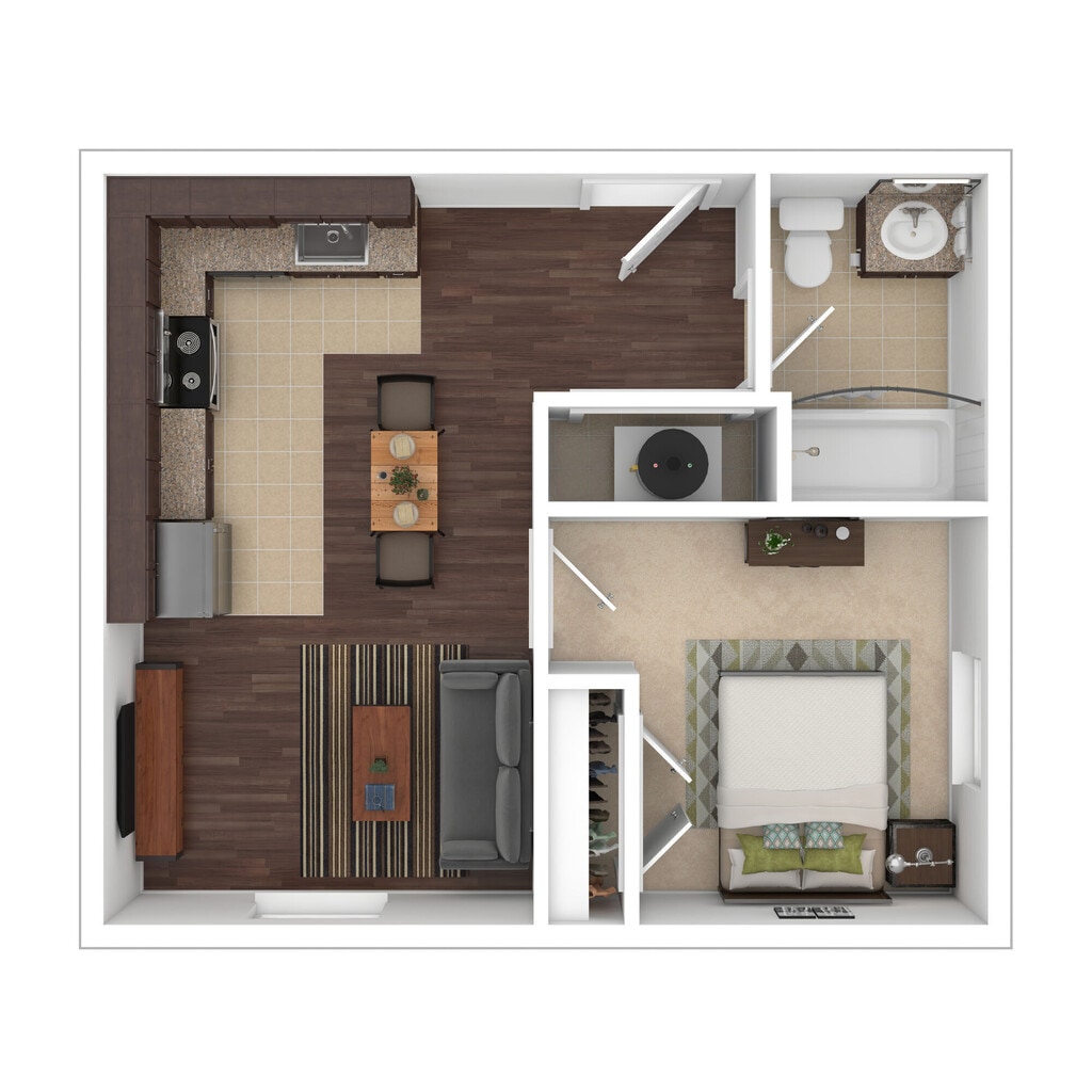 1 Dormitorio, 1 Baño, 549 pies²Disponible AhoraGalería del Modelo