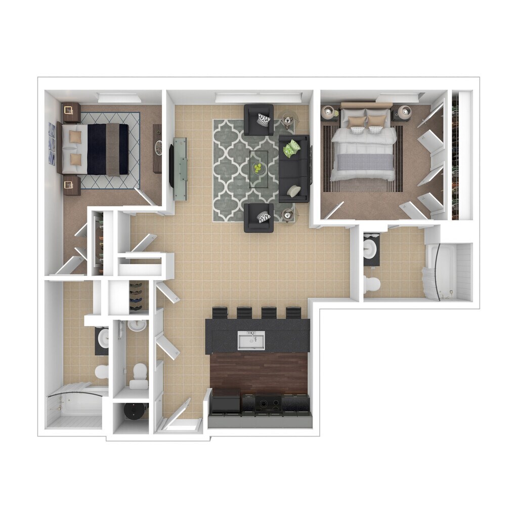 Modelo de apartamento: BellevueDesde $1,1841 Dormitorio, 1 Baño, 549 sq ftDisponible Ahora![]()