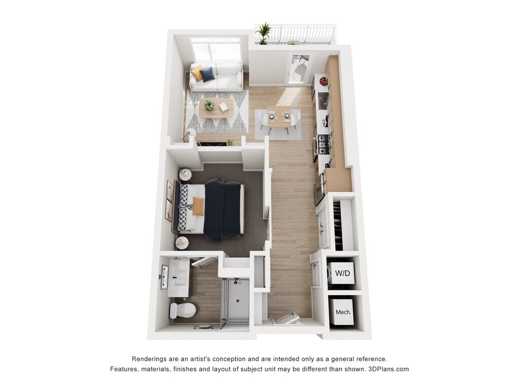 Modelo de apartamento: S1Desde $1,6951 Dormitorio, 1 Baño, 620 sq ftDisponible Ahora![]()