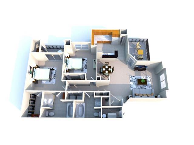 - Amplio de 1, 2, & 3 habitaciones y planos de planta