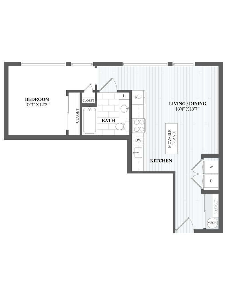 Estudio, 1 Baño, 608 pies²Más CargosDisponible AhoraGalería del Modelo