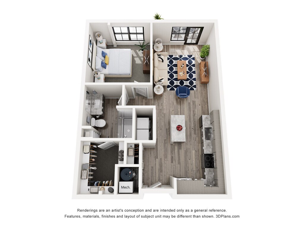 Modelo de apartamento: Drift Tide - A3.A1 Dormitorio, 1 Baño, 744 sq ftDisponible June 17, 2026![]()