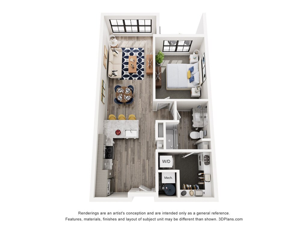 Modelo de apartamento: Leeward - A1.A1 Dormitorio, 1 Baño, 664 sq ftDisponible June 17, 2026![]()