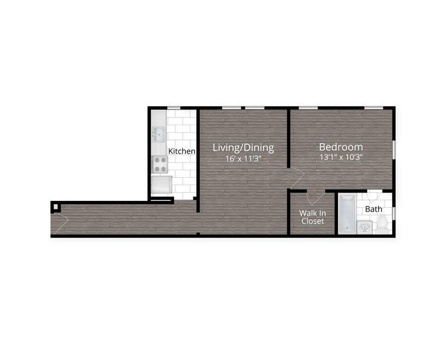 1 Dormitorio, 1 Baño, 508-558 pies²Disponible AhoraGalería del Modelo