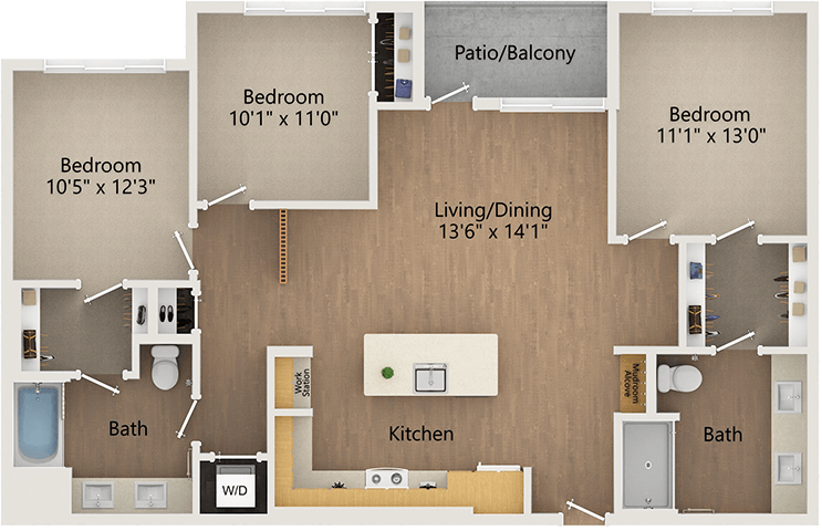 Modelo de apartamento: A2-MDesde $3,0651 Dormitorio, 1 Baño, 1022 sq ftDisponible Ahora![]()