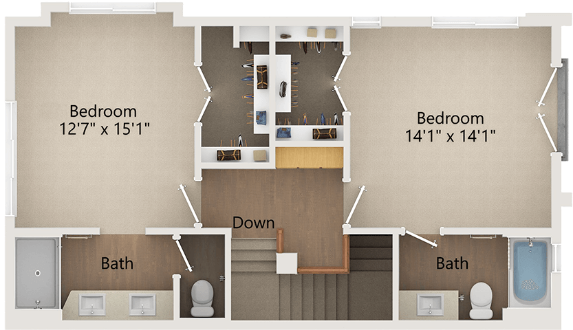 Modelo de apartamento: A4Desde $2,6151 Dormitorio, 1 Baño, 749 sq ftDisponible Ahora![]()