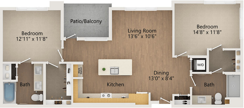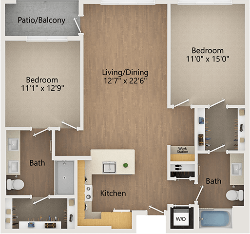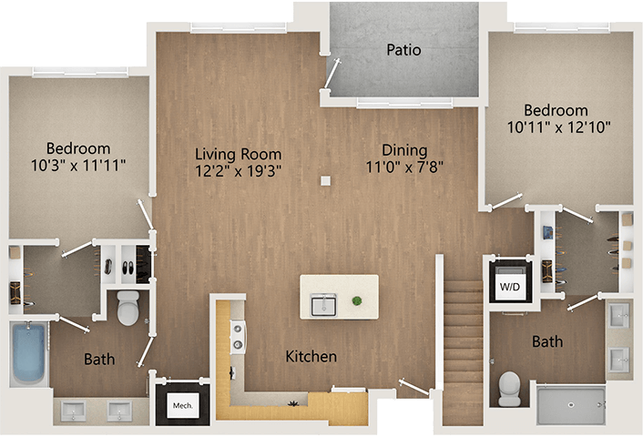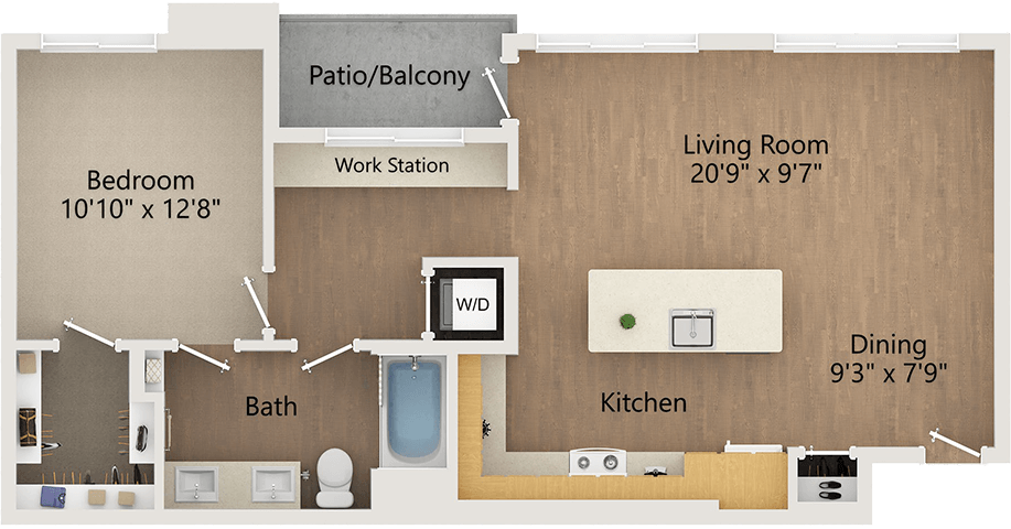 1 Dormitorio, 1 Baño, 1022 pies²Disponible AhoraEl más grandeEsta opción tiene las unidades más grandes para este modeloGalería del Modelo