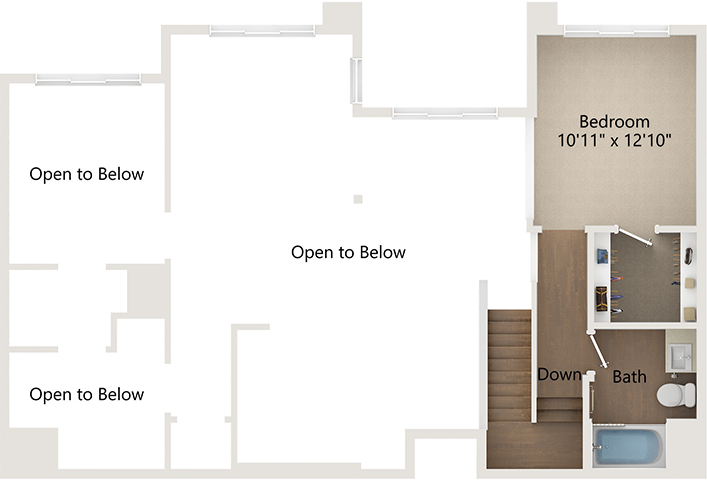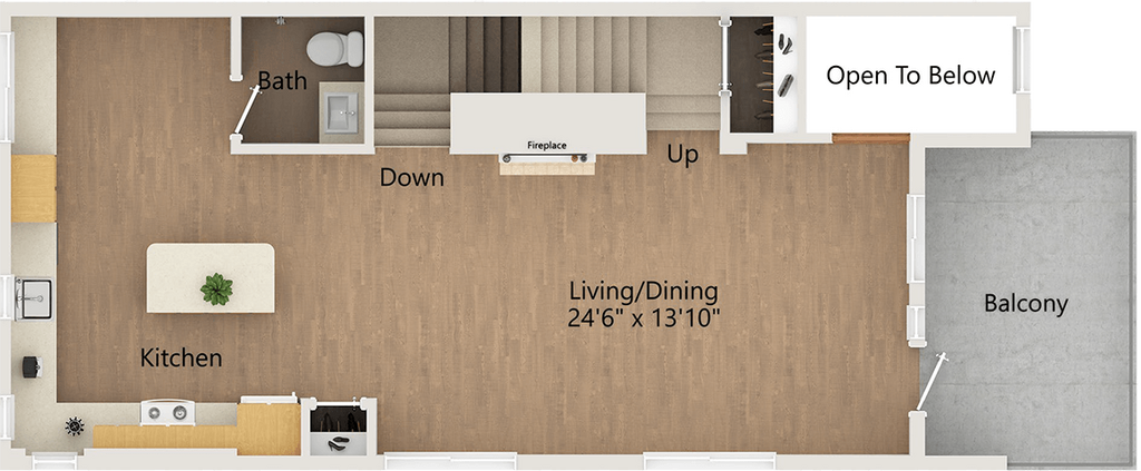 1 Dormitorio, 1 Baño, 749 pies²Disponible AhoraGalería del Modelo