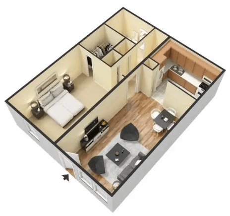 Modelo de apartamento: 1 Bedroom 1 Bathroom Washer/Dryer$1,0151 Dormitorio, 1 Baño, 678 sq ftDisponible Ahora![]()