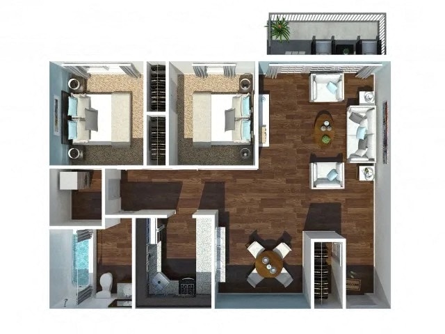Modelo de apartamento: Two Bedroom One BathLlame para Precios2 Dormitorios, 1 Baño, 950 sq ftNo DisponibleTwo Bedroom One Bath - Plano 1