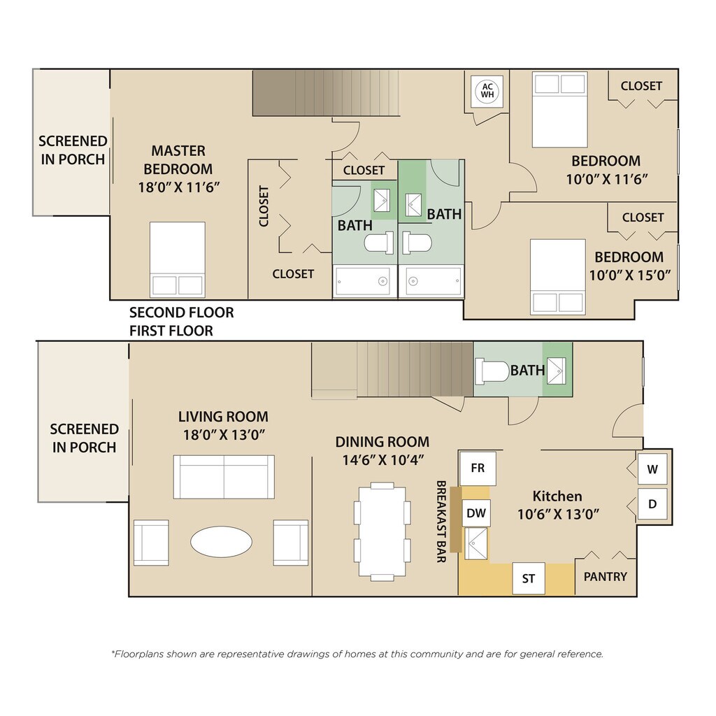 Modelo de apartamento: Monte Larco TownhouseDesde $1,0881 Dormitorio, 1.5 Baños, 1009 sq ftDisponible Ahora![]()