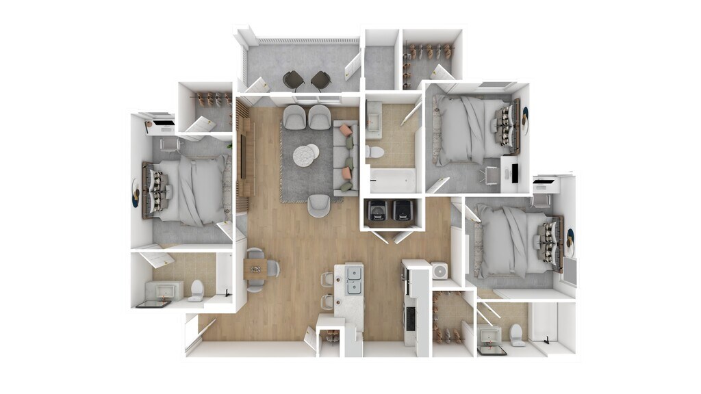 Modelo de apartamento: Royal3 Dormitorios, 3 Baños, 1275 sq ftNo DisponibleRoyal - Plano 1 4 Dormitorios