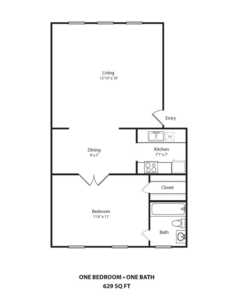 Modelo de apartamento: One Bed One Bath1 Dormitorio, 1 Baño, 629 sq ftDisponible Ahora![]()