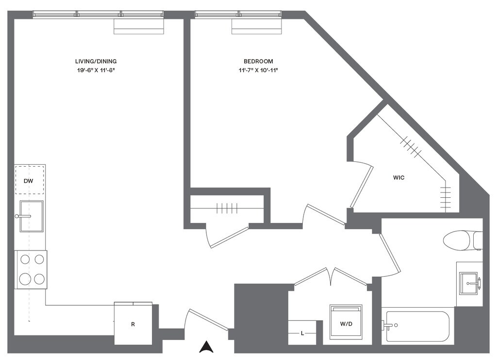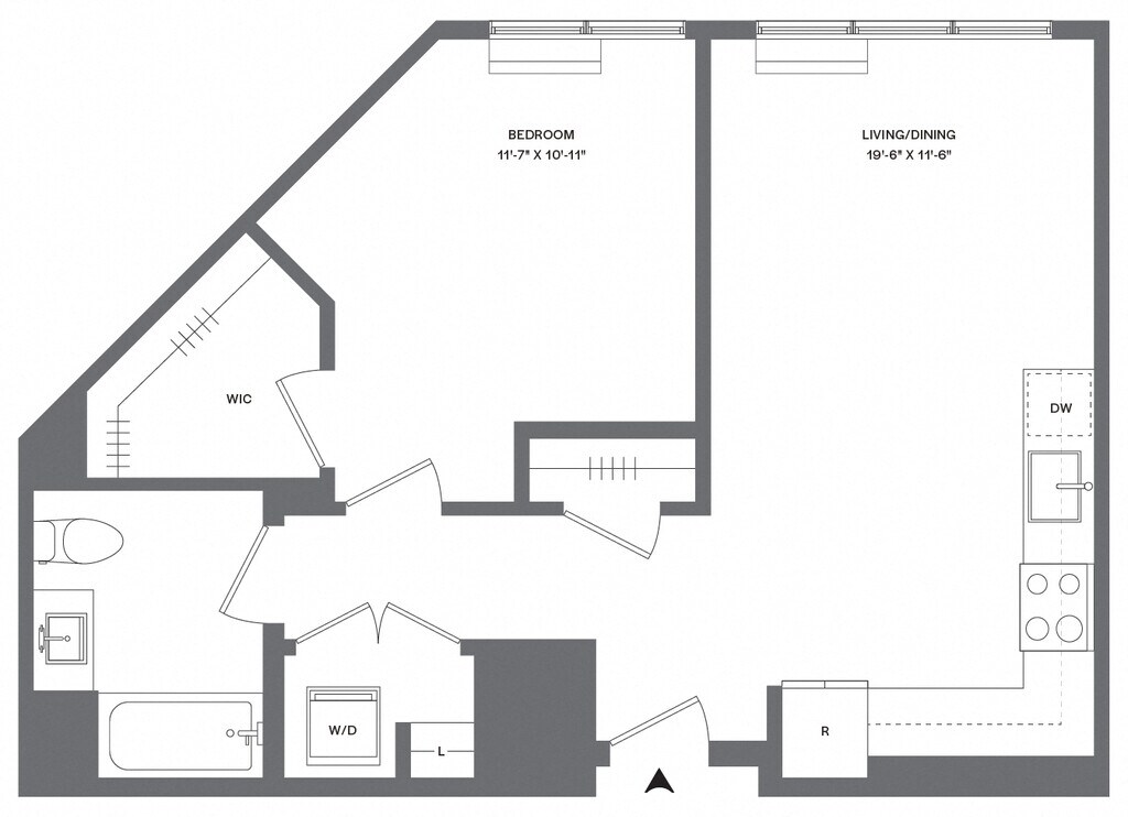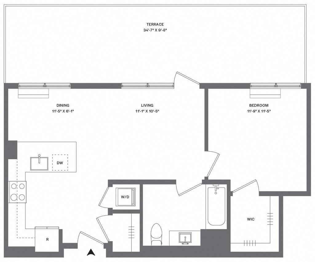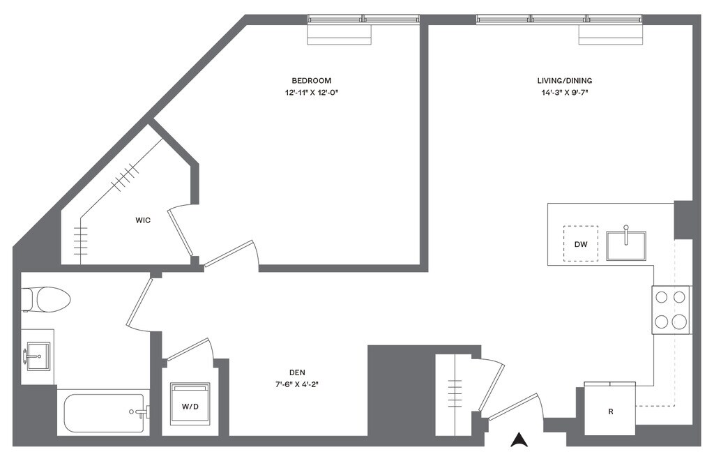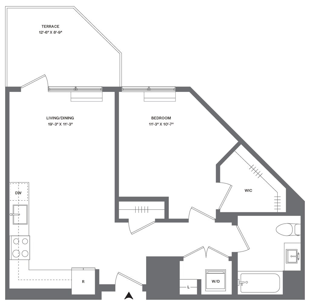 1 Dormitorio, 1 Baño, 709-714 pies²Disponible AhoraGalería del Modelo