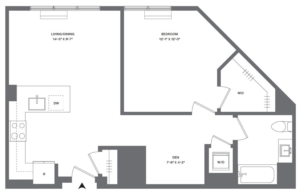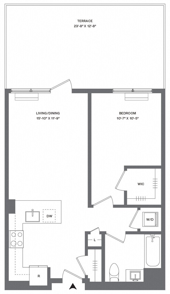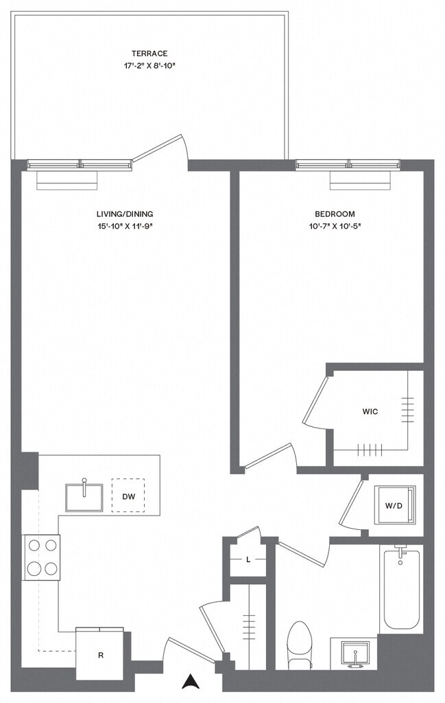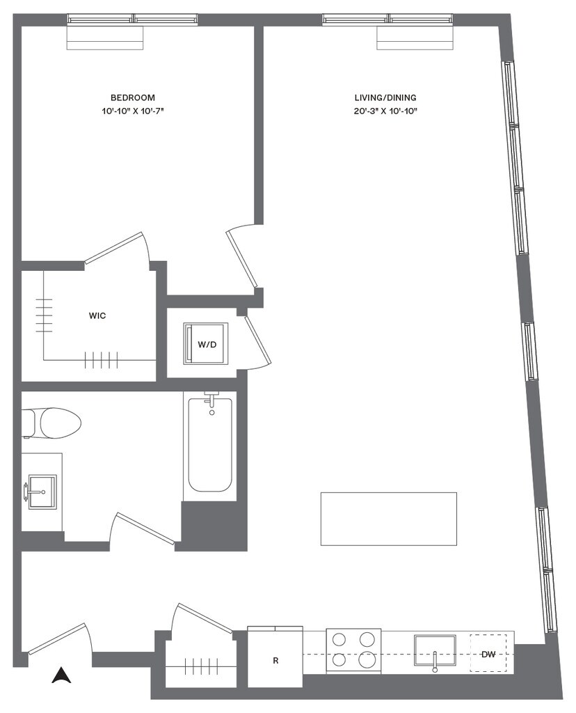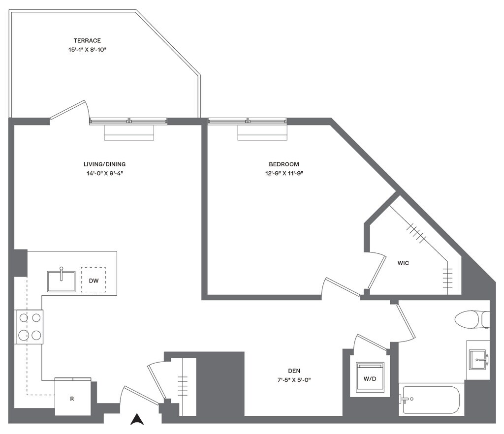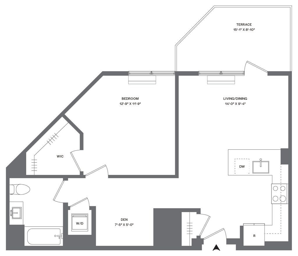 1 Dormitorio, 1 Baño, 709-714 pies²Disponible AhoraGalería del Modelo