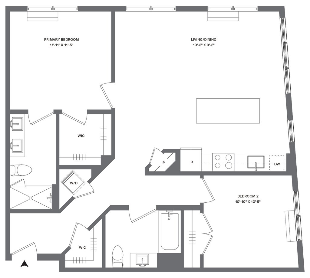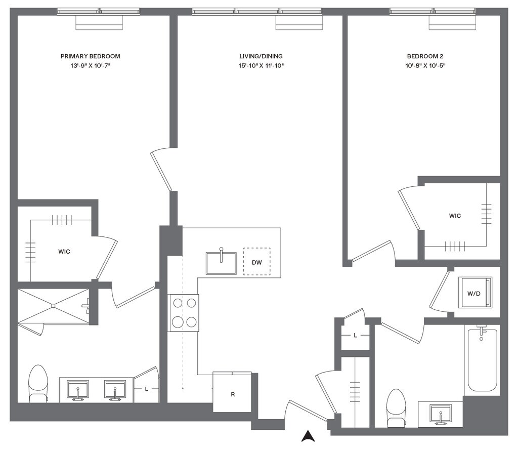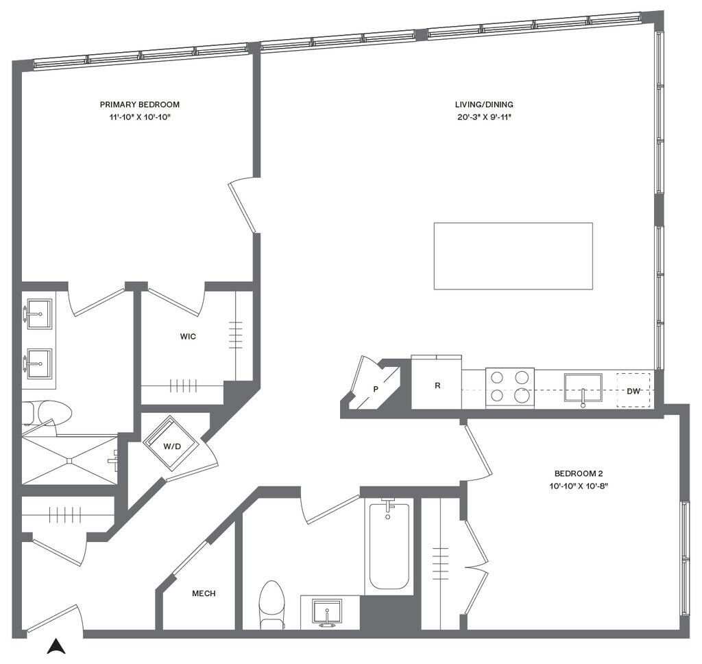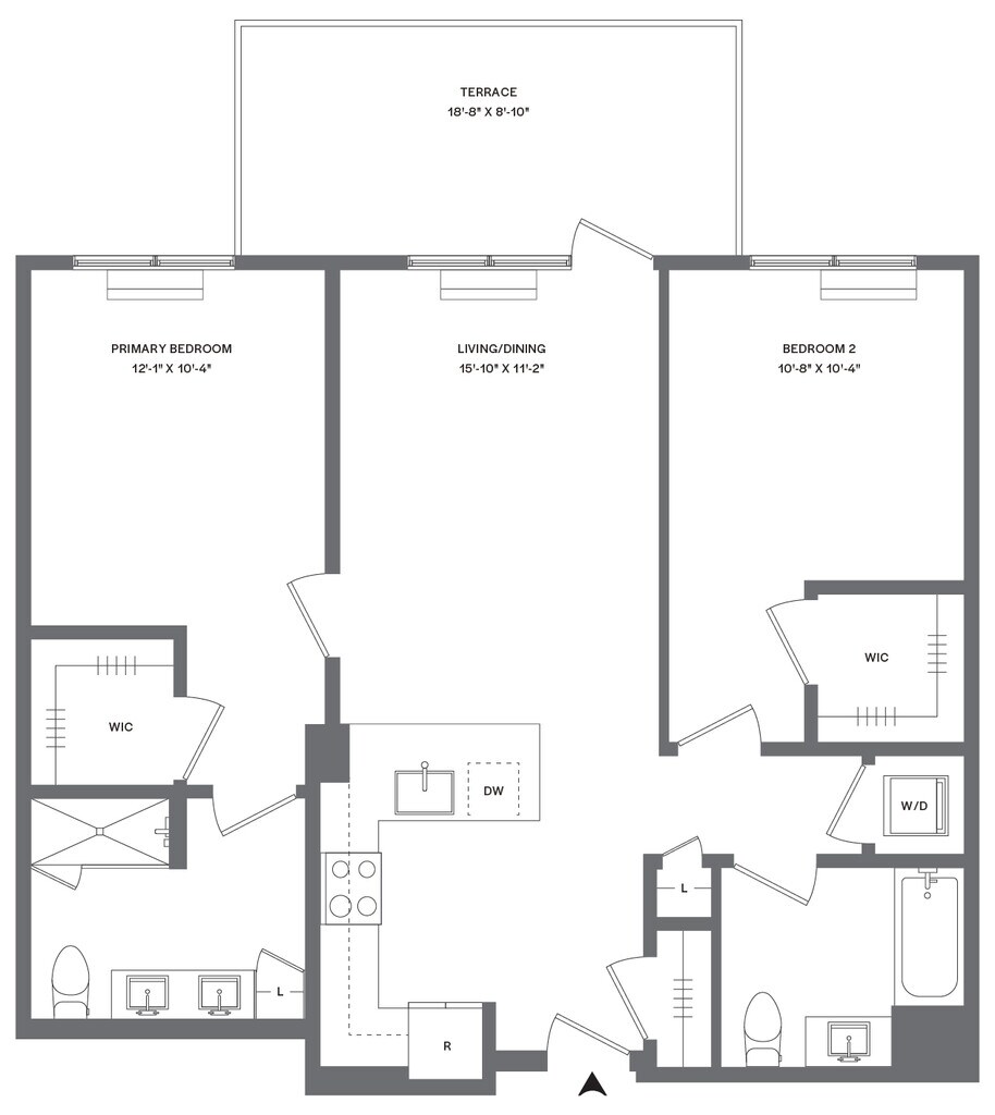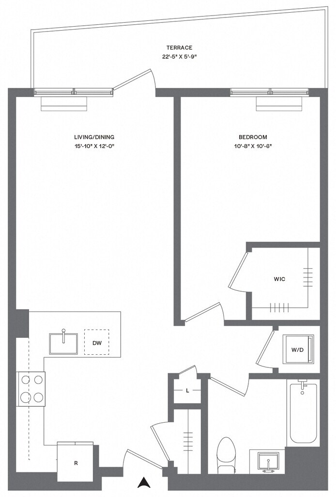 1 Dormitorio, 1 Baño, 709-714 pies²Disponible AhoraGalería del Modelo