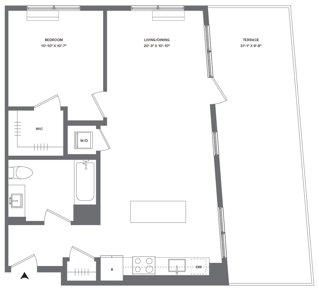 Estudio, 1 Baño, 530-531 pies²Disponible AhoraGalería del Modelo