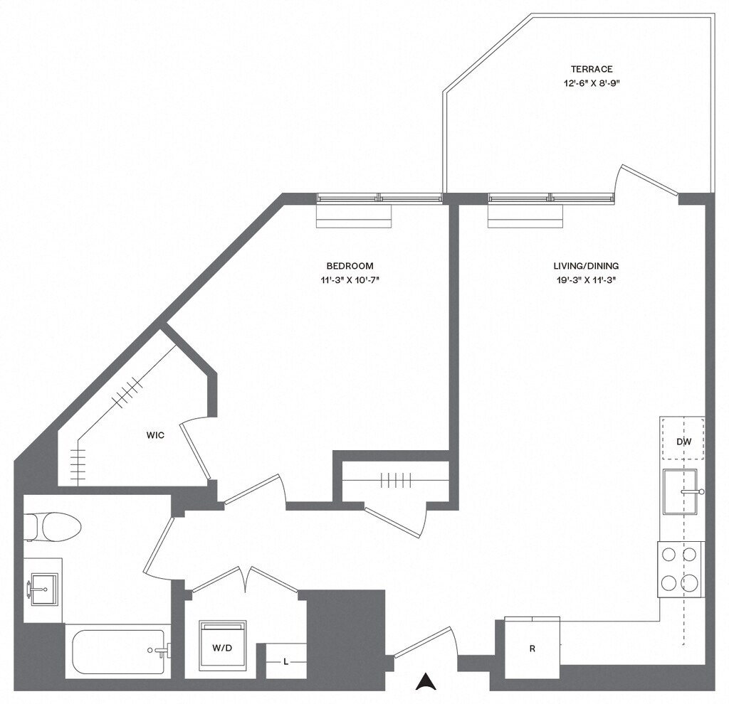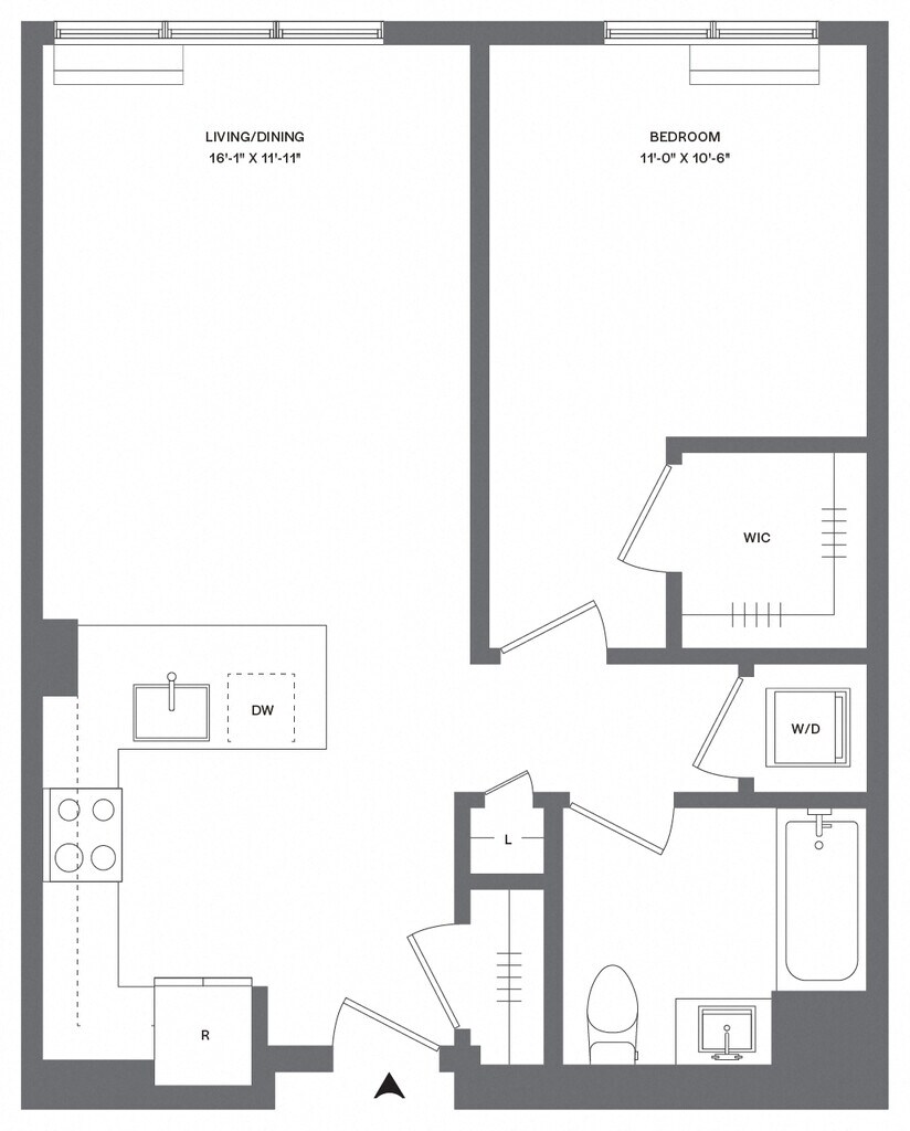 Modelo de apartamento: A1.1Desde $2,2751 Dormitorio, 1 Baño, 699-709 sq ftDisponible Ahora![]()