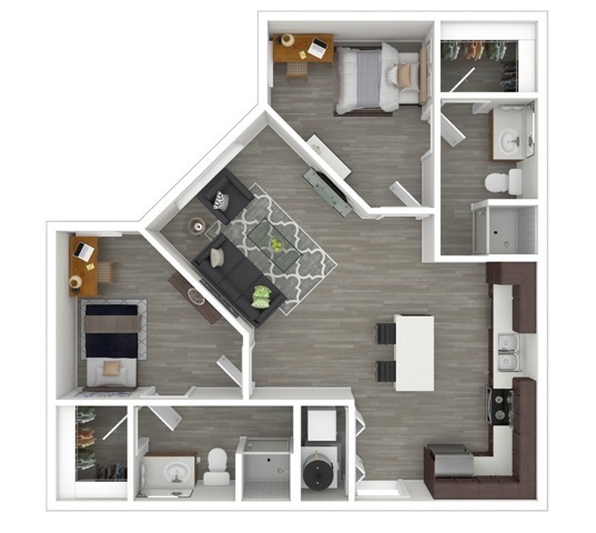 2 Dormitorios, 2 Baños, 842 pies²Disponible AhoraGalería del Modelo