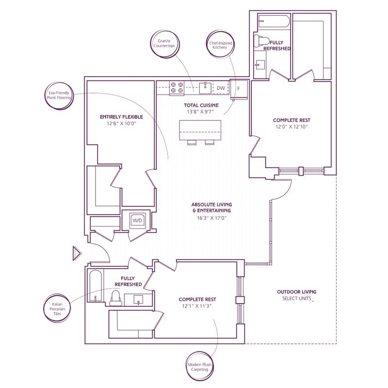 1 Dormitorio, 1 Baño, 604 pies²Disponible AhoraGalería del Modelo