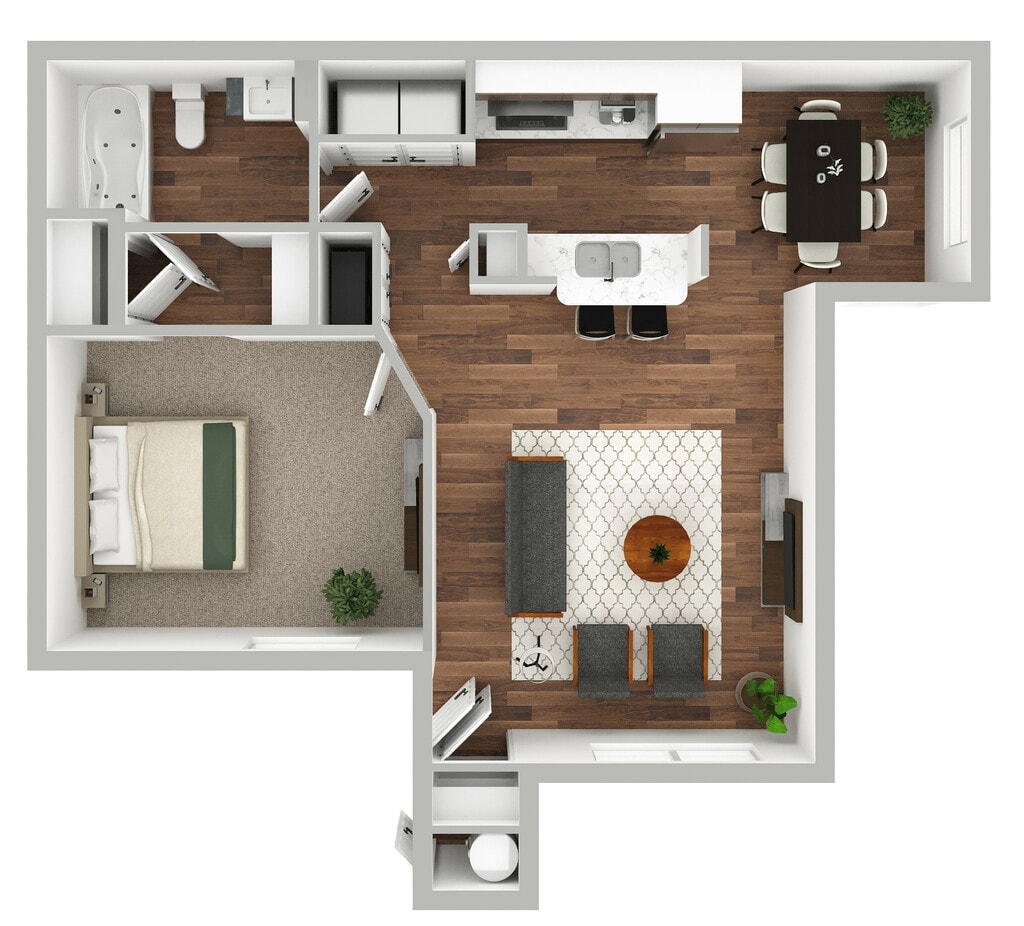 1 Dormitorio, 1 Baño, 734 pies²Disponible AhoraGalería del Modelo
