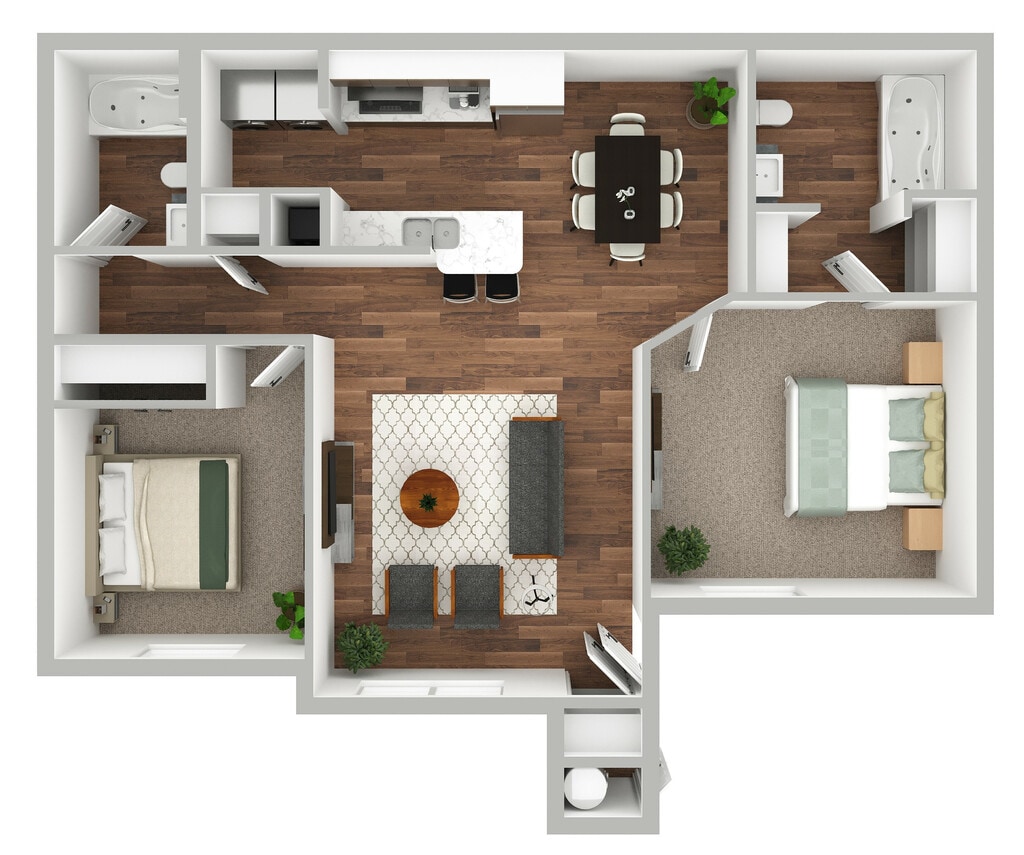 2 Dormitorios, 2 Baños, 937 pies²Disponible AhoraGalería del Modelo