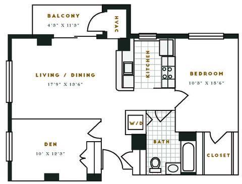 Modelo de apartamento: D1RDesde $2,4061 Dormitorio, 1 Baño, 760-772 sq ftDisponible AhoraLos planos de la planta son una interpretación artística. Todas las dimensiones son aproximadas. Los tamaños o el detalle del producto real y sus especificaciones pueden variar. No todas las características están disponibles en todos los hogares para rentar. Los precios y la disponibilidad están sujetos a cambios. El alquiler que se muestra es mensual. Se pueden aplicar ciertos cargos, por ejemplo, entrega de paquetes, recolección de basura, agua, servicios, etc. Depositos varian. Consulta a un representante para conocer detalles.