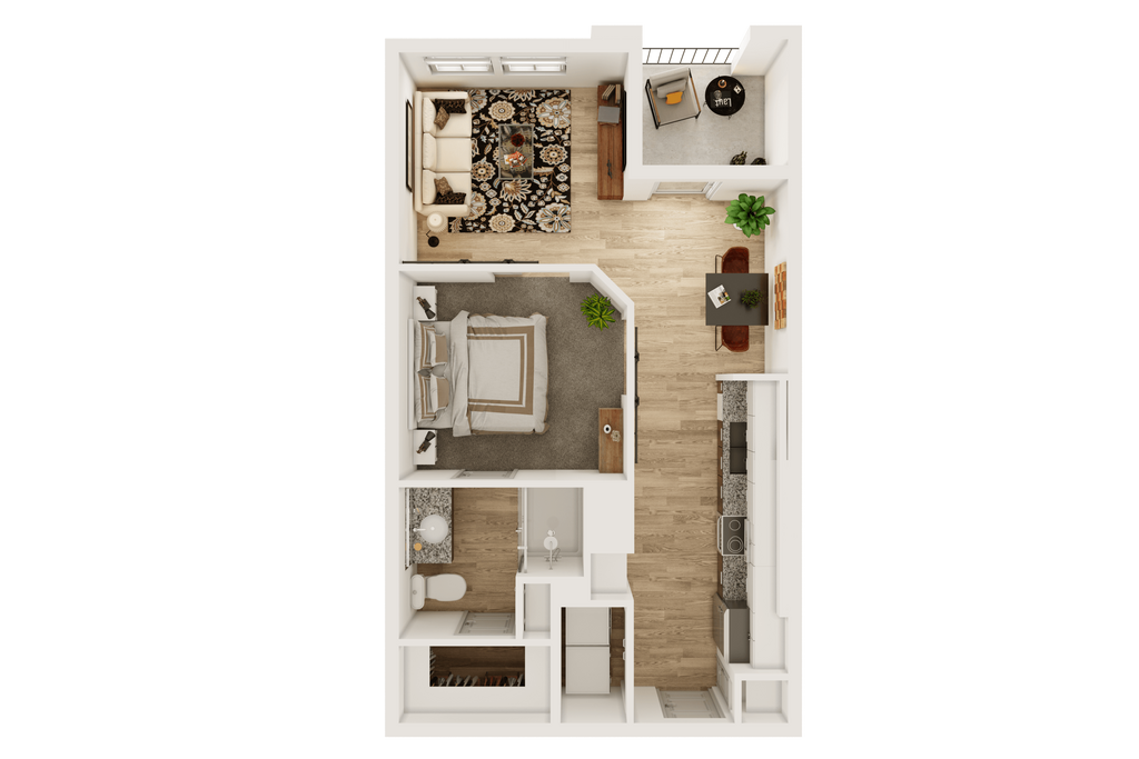 1 Dormitorio, 1 Baño, 721 pies²Disponible AhoraGalería del Modelo