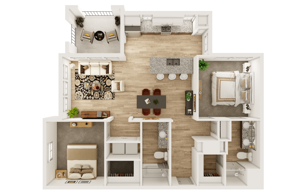 1 Dormitorio, 1 Baño, 827 pies²Disponible AhoraGalería del Modelo