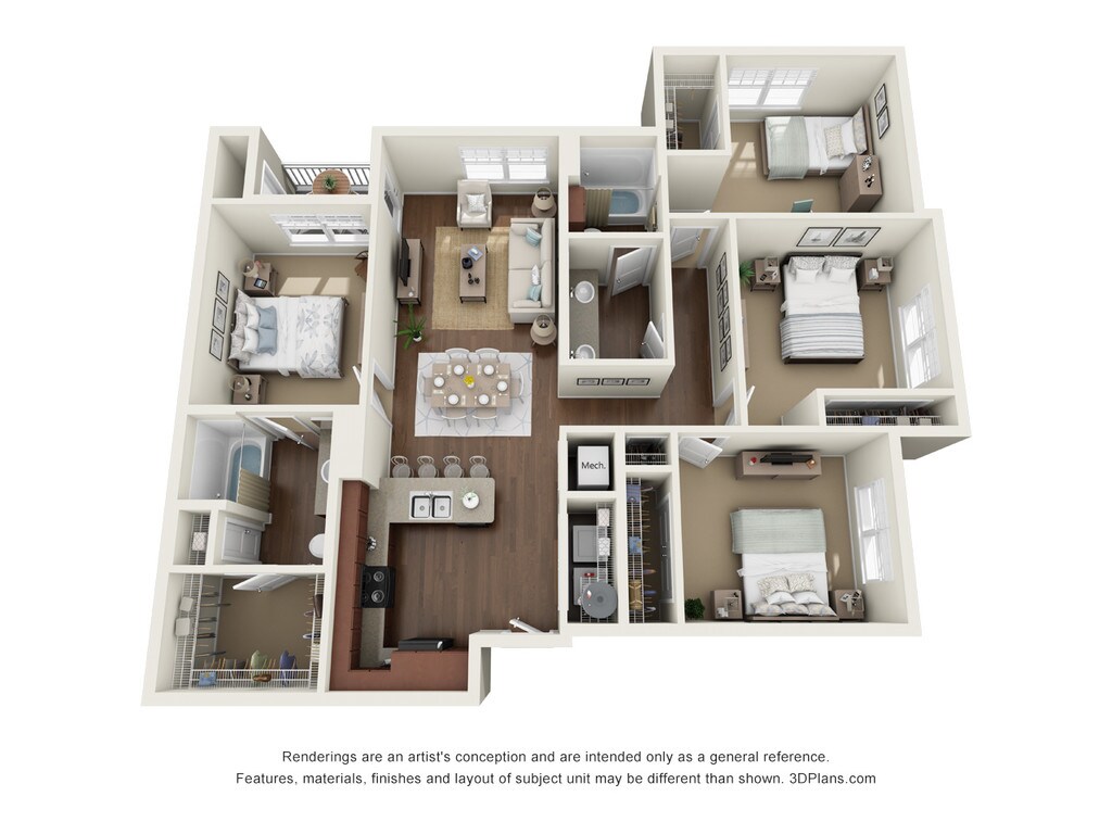 Modelo de apartamento: D$1,5494 Dormitorios, 2 Baños, 1486 sq ftDisponible Ahora![]()