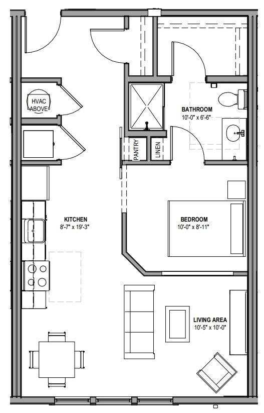 1 Dormitorio, 1 Baño, 636-914 pies²Disponible AhoraGalería del Modelo