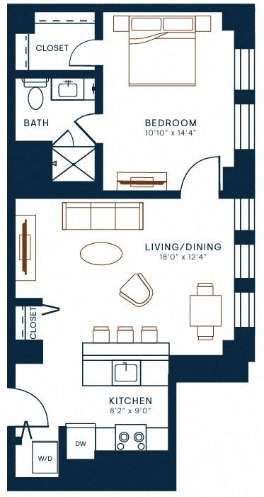 Modelo de apartamento: 1 Bedroom 14Desde $3,7521 Dormitorio, 1 Baño, 747 sq ftDisponible Ahora![]()