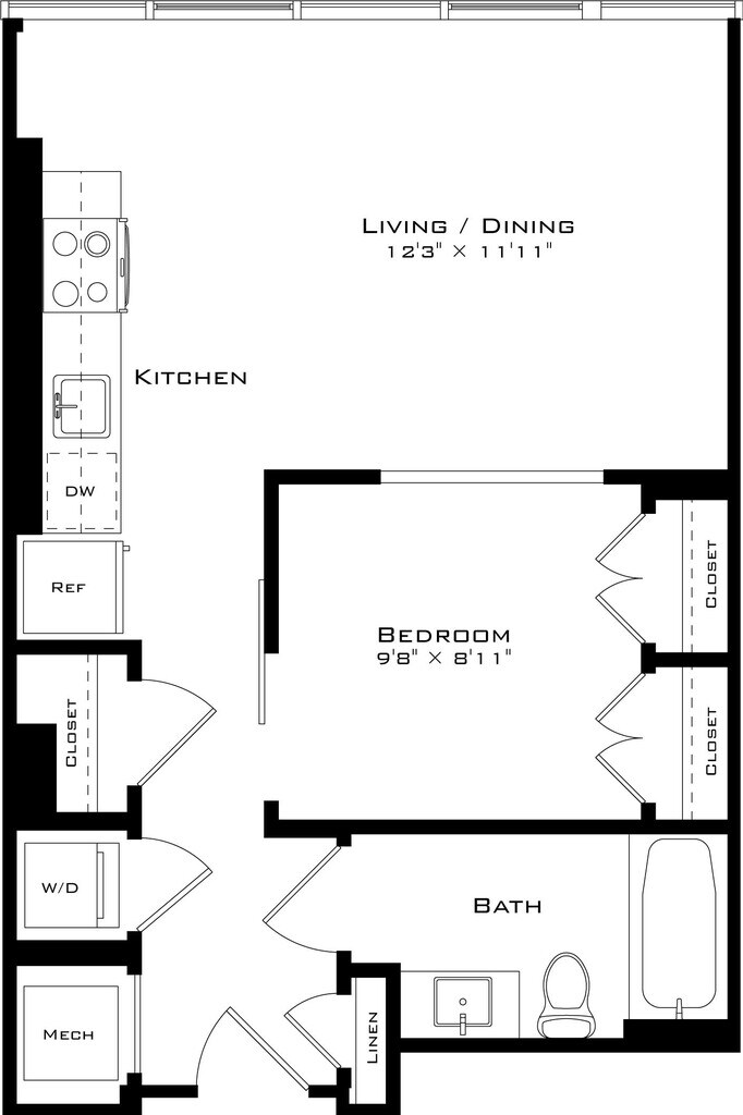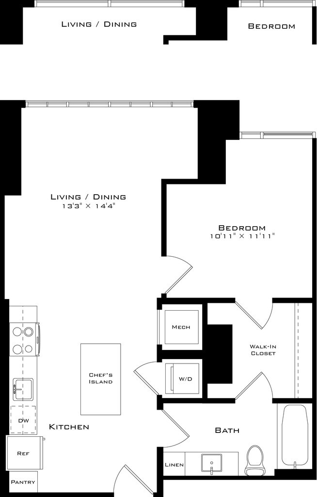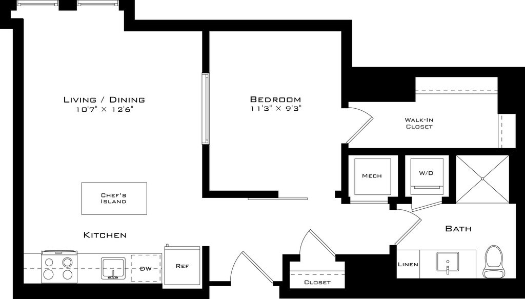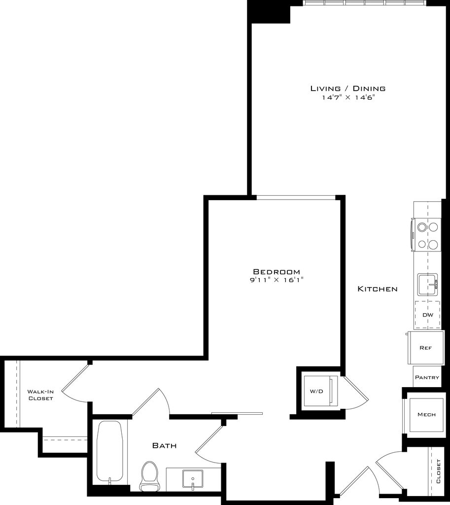 Estudio, 1 Baño, 386 pies²Disponible AhoraGalería del Modelo
