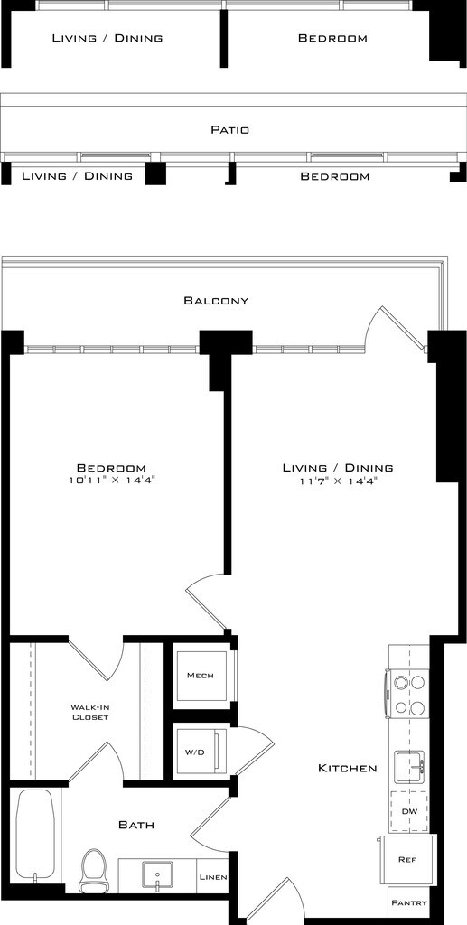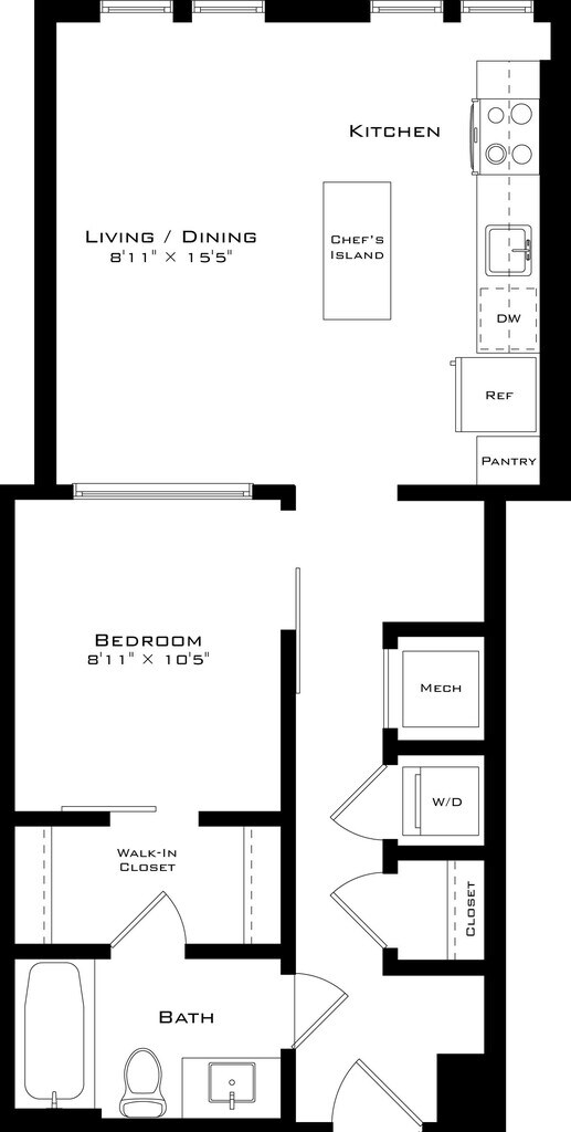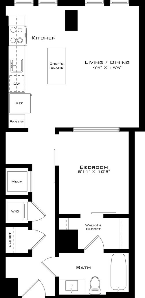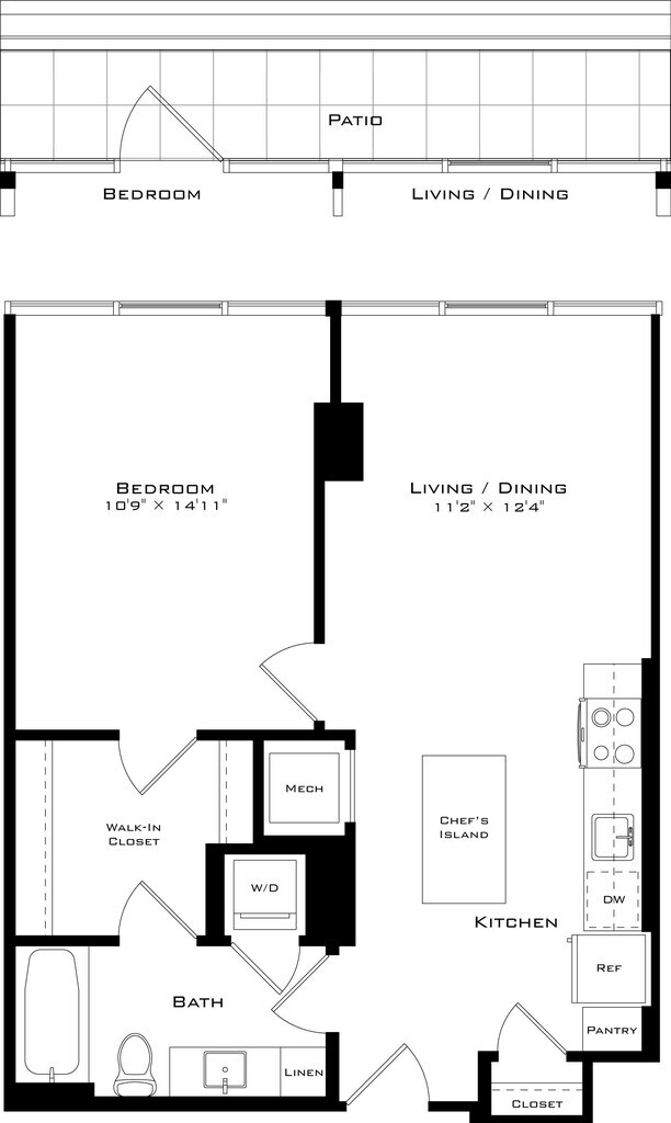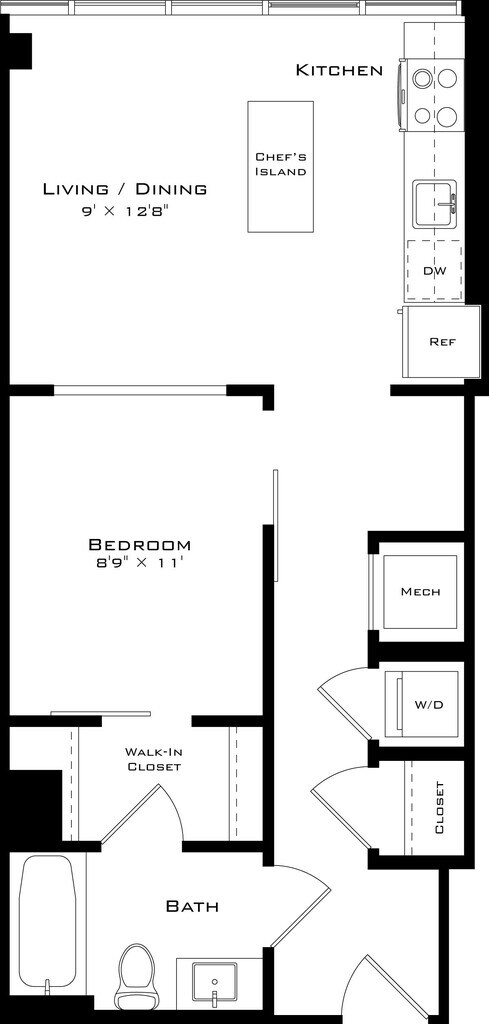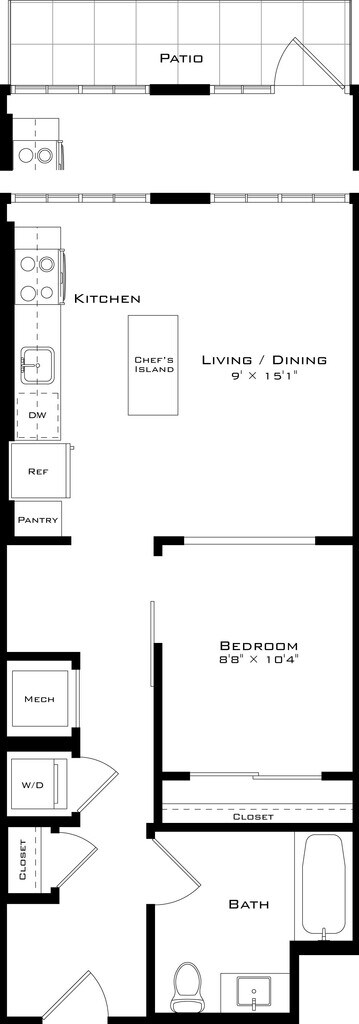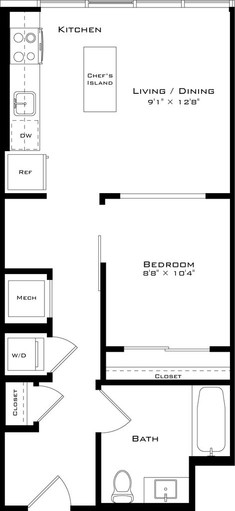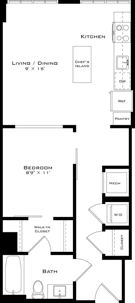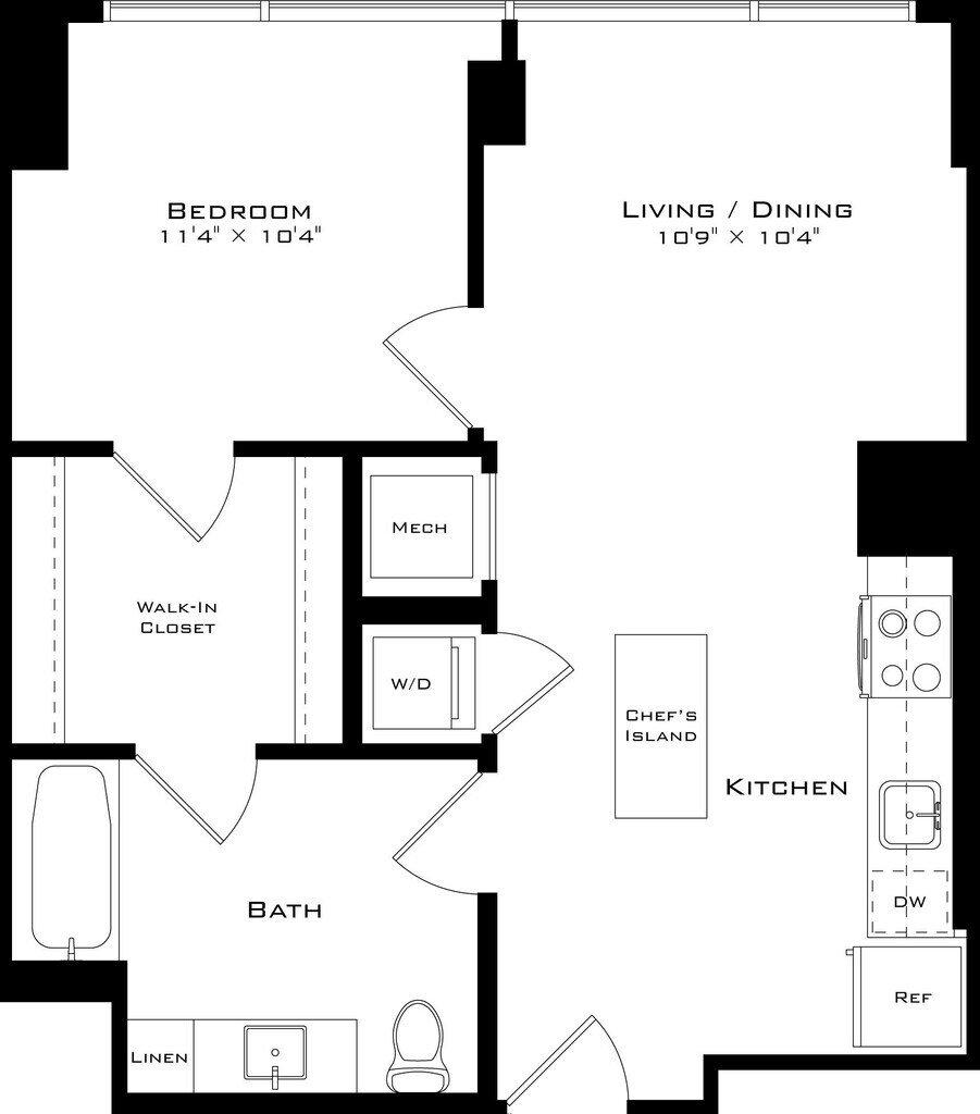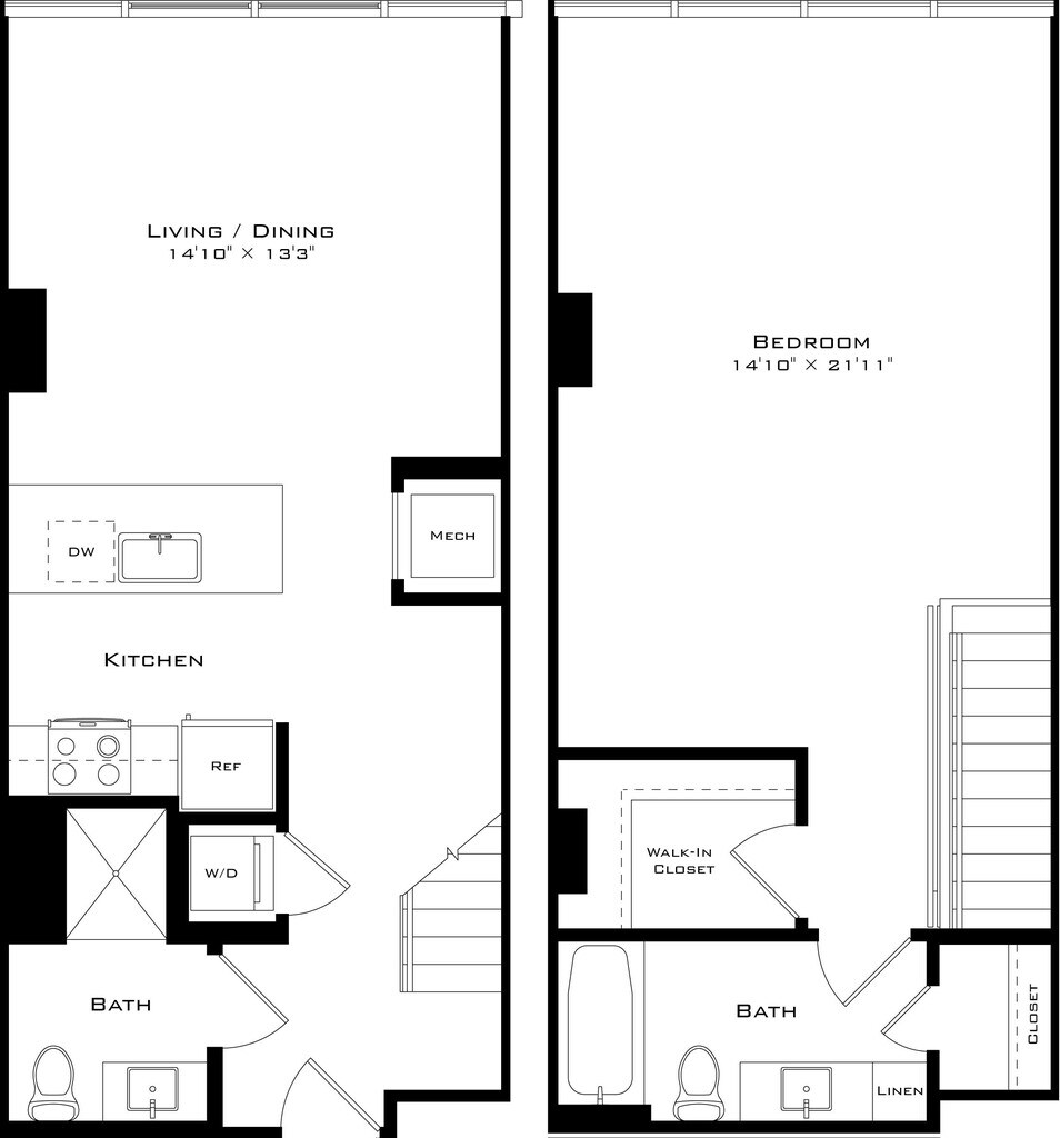 Estudio, 1 Baño, 374 pies²Disponible AhoraGalería del Modelo