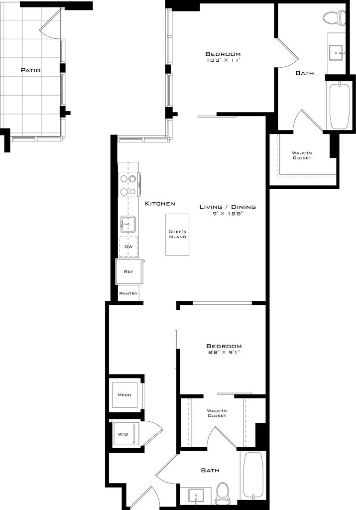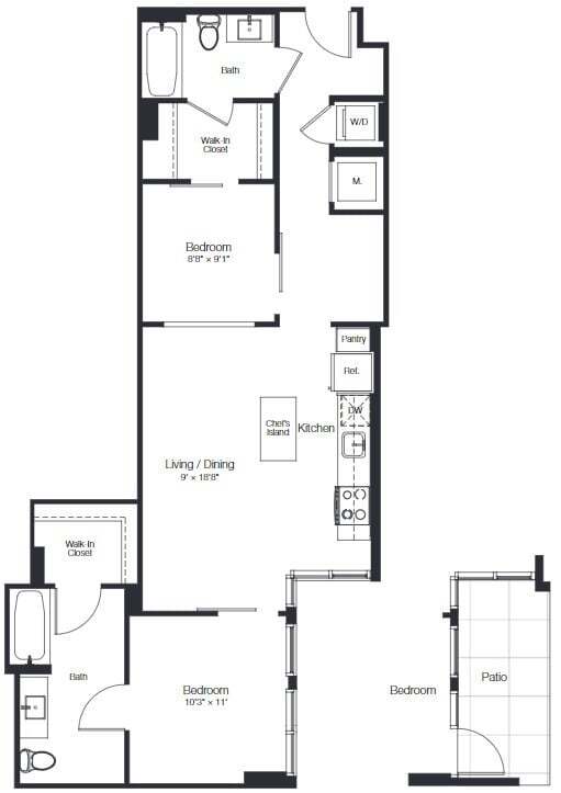 Modelo de apartamento: M3Desde $1,795Estudio, 1 Baño, 374 sq ftDisponible AhoraPlanosFotos![]()