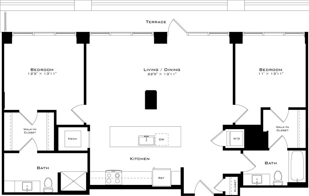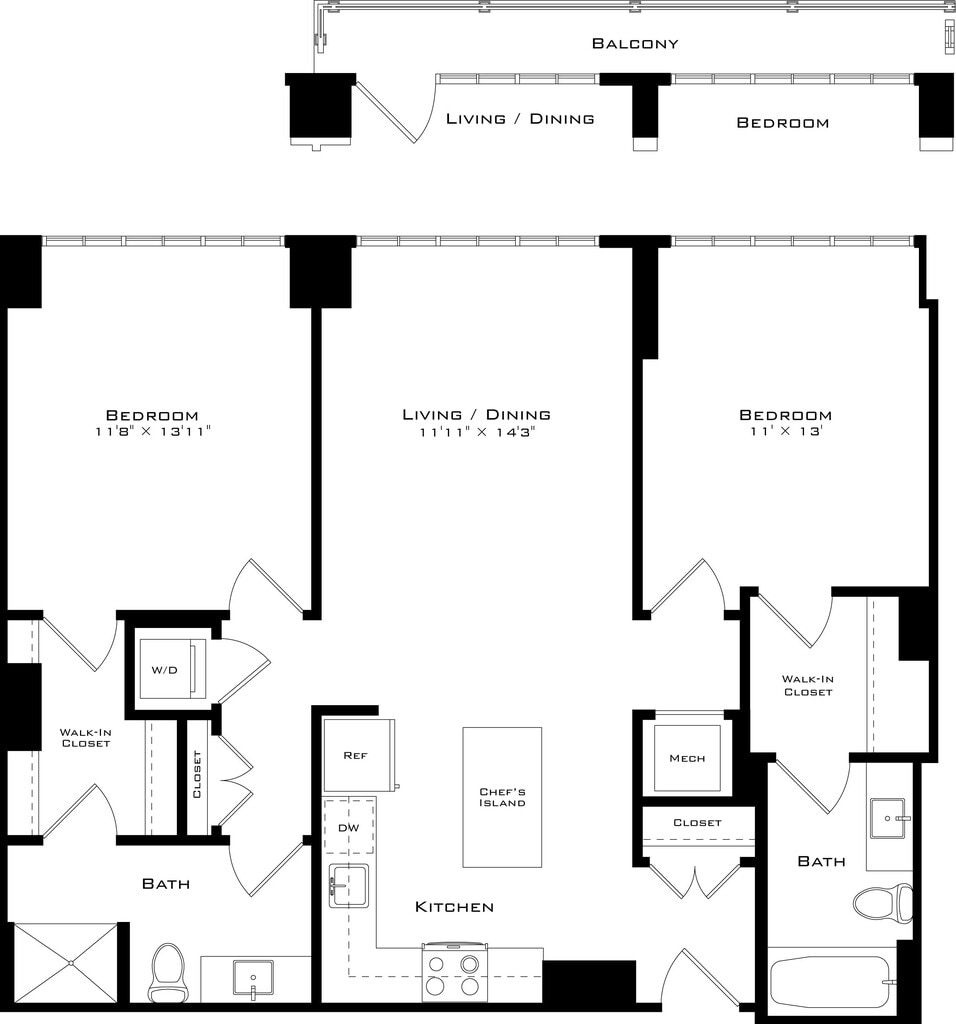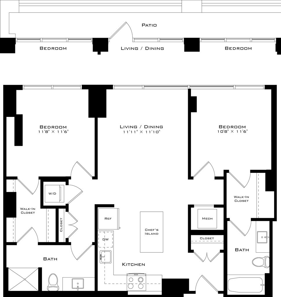 Modelo de apartamento: M2Desde $1,790Estudio, 1 Baño, 386 sq ftDisponible Ahora![]()