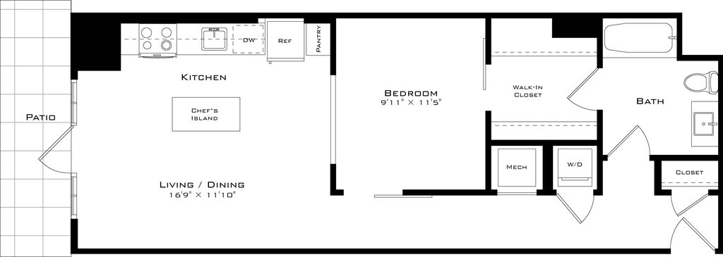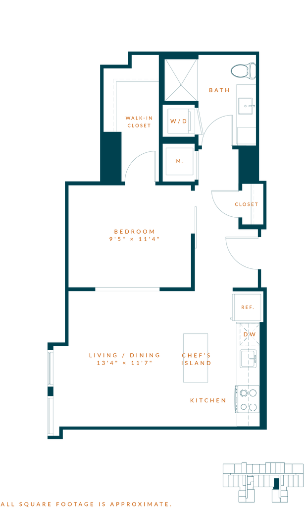 Modelo de apartamento: M1Desde $1,690Estudio, 1 Baño, 386 sq ftDisponible Ahora![]()