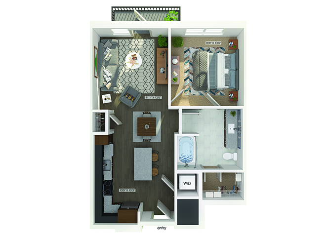 Estudio, 1 Baño, 602 pies²Disponible AhoraGalería del Modelo