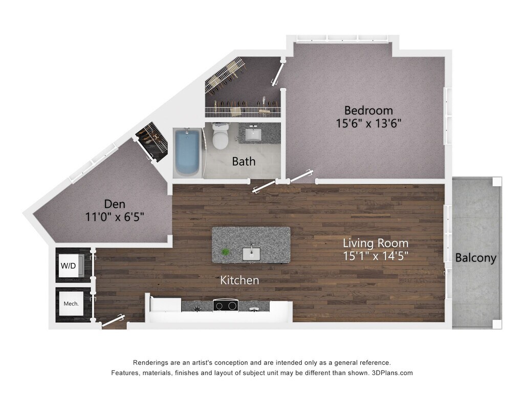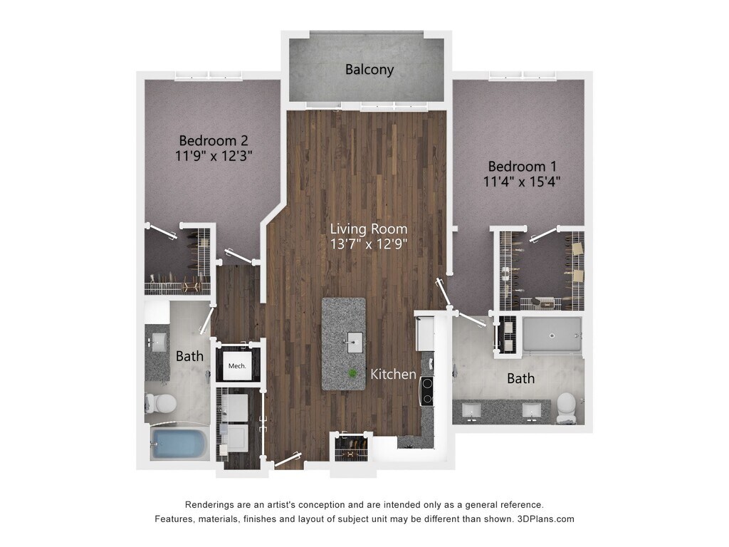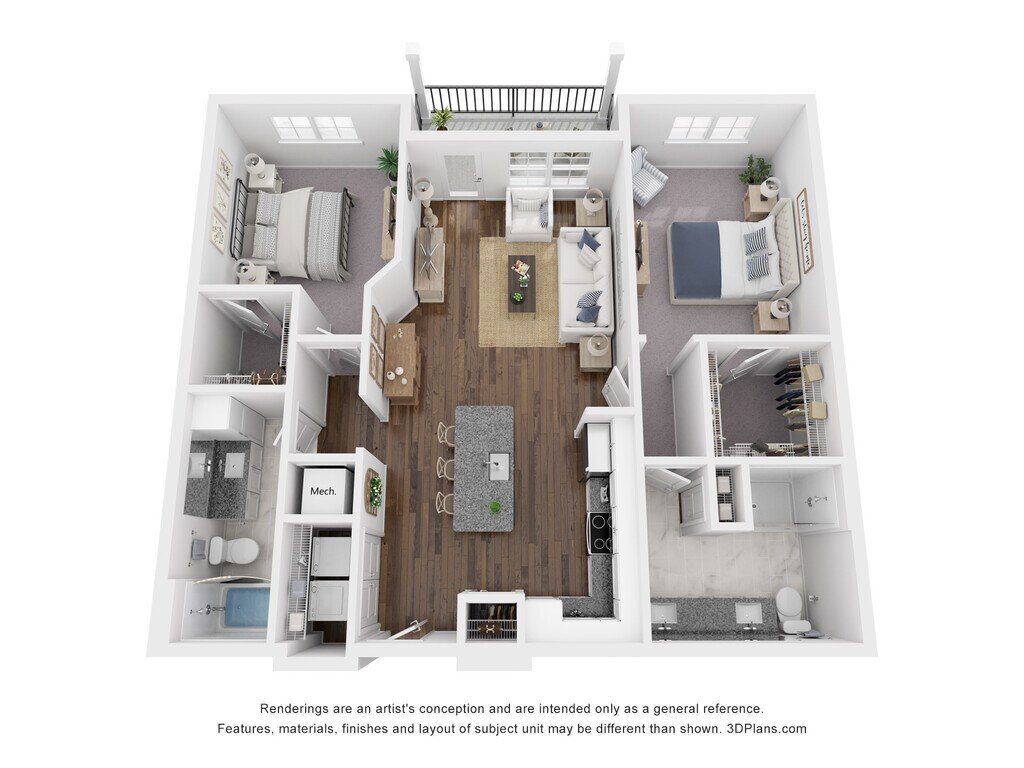 1 Dormitorio, 1 Baño, 742 pies²Disponible AhoraGalería del Modelo