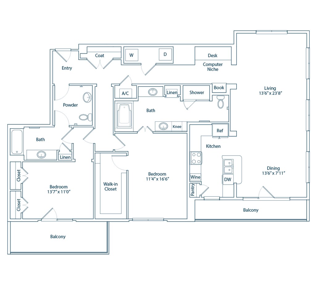 Modelo de apartamento: The Chilton1 Dormitorio, 1 Baño, 1006 sq ftNo Disponible![]()