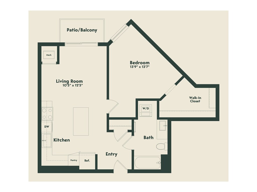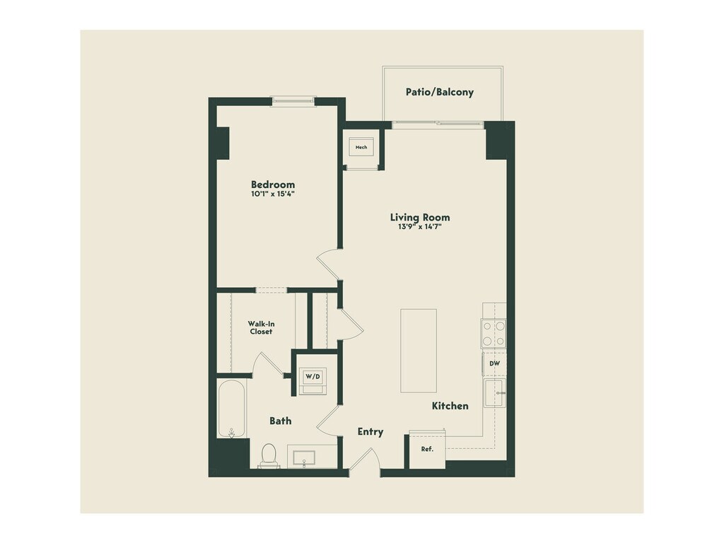 1 Dormitorio, 1 Baño, 675 pies²Más CargosDisponible AhoraEl más baratoEsta opción tiene los precios más bajos para este modeloGalería del Modelo