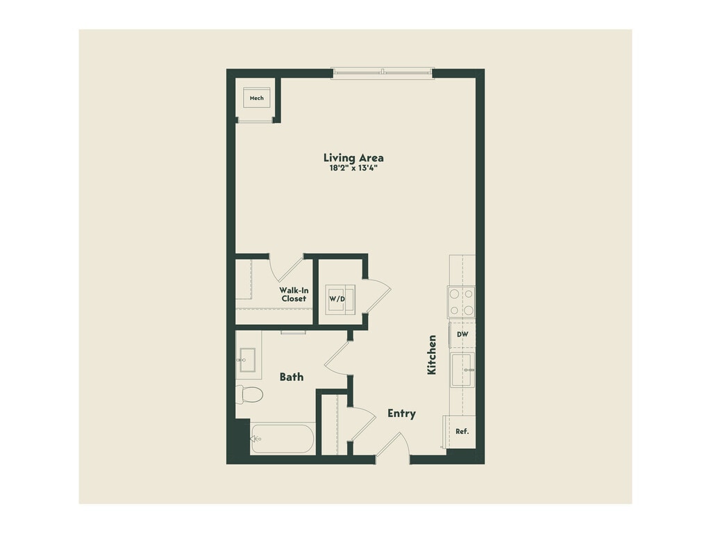 Estudio, 1 Baño, 596 pies²Más CargosDisponible AhoraEl más grandeEsta opción tiene las unidades más grandes para este modeloGalería del Modelo