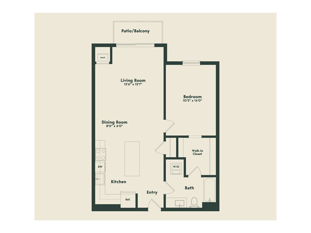 Modelo de apartamento: B-6.1$1,8361 Dormitorio, 1 Baño, 702 sq ftDisponible AhoraLos planos son representaciones artísticas. Todas las dimensiones son aproximadas. El producto y las especificaciones reales pueden variar en tamaño o detalle. No todas las características están disponibles en cada vivienda en alquiler. Por favor, consulta con un representante para obtener más detalles.