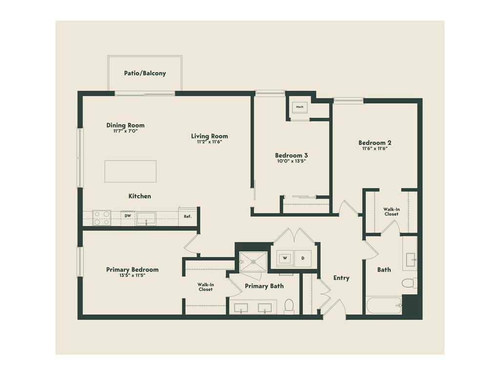 Modelo de apartamento: A-3Desde $1,7611 Dormitorio, 1 Baño, 675 sq ftDisponible AhoraLos planos son representaciones artísticas. Todas las dimensiones son aproximadas. El producto y las especificaciones reales pueden variar en tamaño o detalle. No todas las características están disponibles en cada vivienda en alquiler. Por favor, consulta con un representante para obtener más detalles.