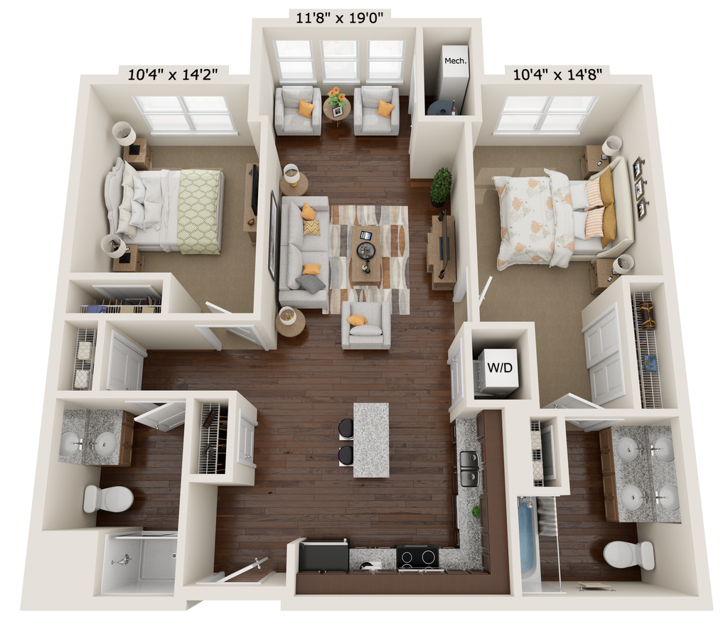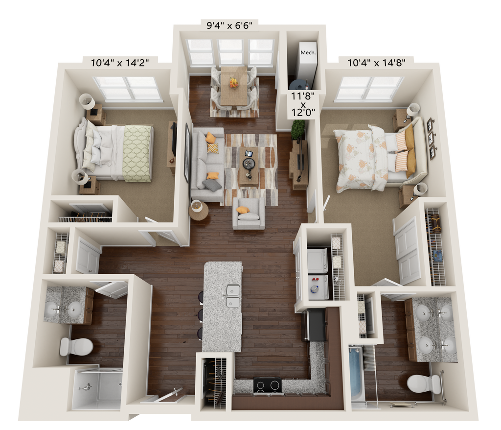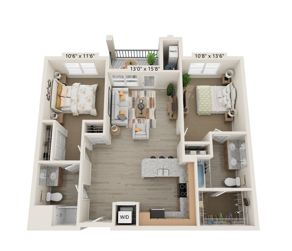 Walnut - Plano 1 Unidad de apartamento: 5-107Modelo de apartamento: Walnut$1,3851 Dormitorio, 1 Baño, 895 sq ftDisponible AhoraHickory