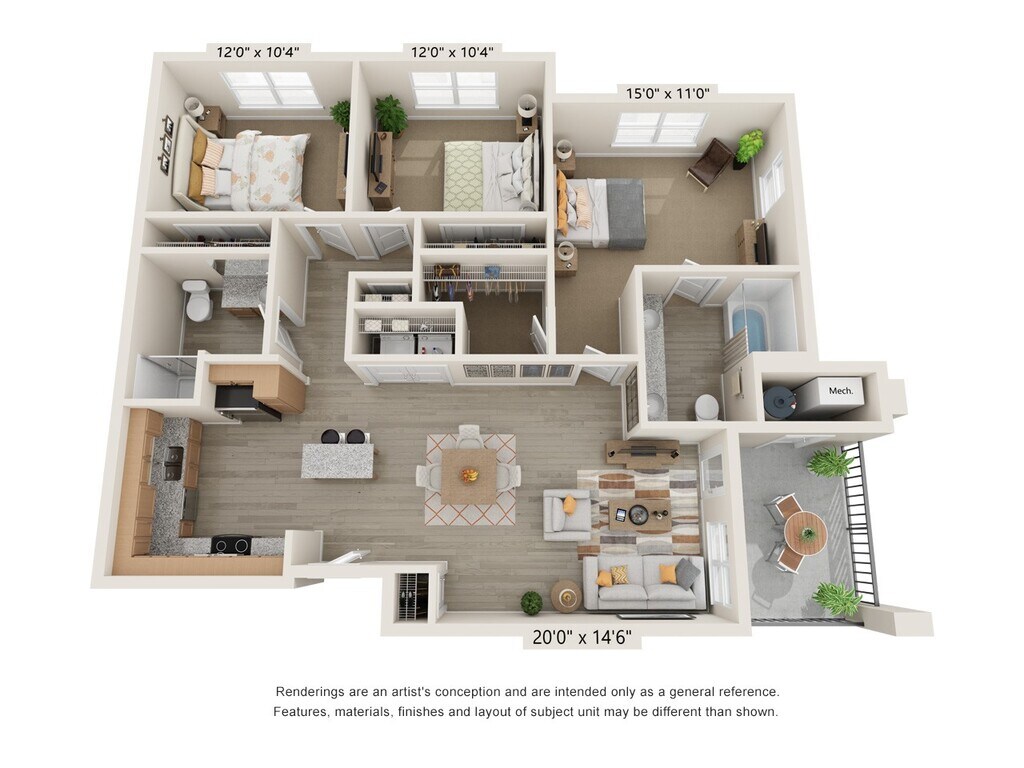 Modelo de apartamento: ButternutLlame para Precios1 Dormitorio, 1 Baño, 875 sq ftNo Disponible![]()