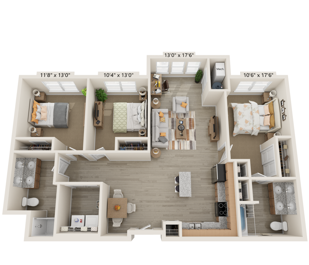Modelo de apartamento: WalnutDesde $1,3851 Dormitorio, 1 Baño, 895 sq ftDisponible Ahora![]()